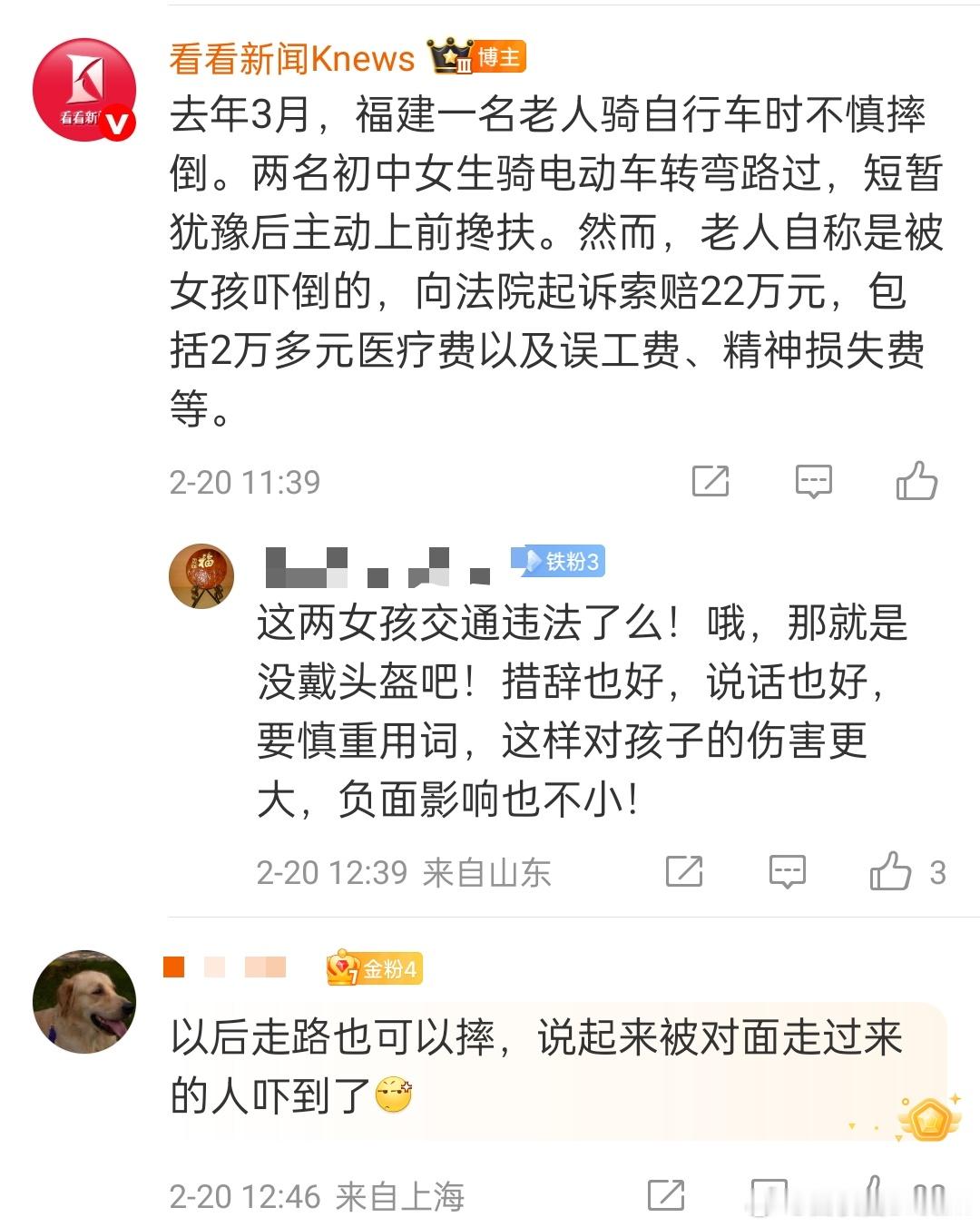 无接触事故扶老人女生该不该担责🔻这个次责不理解。但索赔22万肯定不合理。