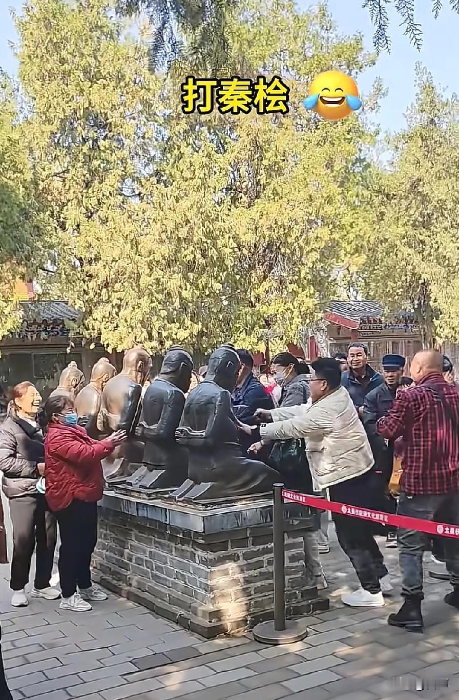 河南太昊陵景区,游客见了秦桧的像就打,有用腰带打的,有脱鞋用鞋打的,有腿疼就把自己的腿摸一下,然后再摸秦桧的腿,据说可以把自己的腿病转移给秦桧。 总之,秦桧的像前,只要有游客,基本上都是要对秦桧动手的,秦桧跪的对面,就是岳飞的庙,但是去拜岳飞的人不多,打秦桧的人却源源不断。 估计秦桧是整个中华文化圈里,最让大家痛恨的家伙,就有网友表示,就连美国的唐人街都有秦桧的像,也是被华人打。 大家见了秦桧的像,千万不要手软,一定要随手给他几巴掌,然后把自己身体不舒服的地方,再传给秦桧。
