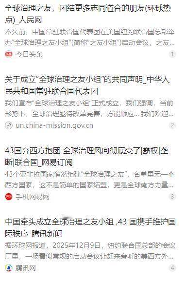 联合国这回算是热闹了,一夜之间冒出来个“新山头”。43 个发展中国家抱团组了个“全球治理之友”,这名单更有意思,愣是一个西方国家都没带。这哪儿是拉个普通群啊,分明就是给那些平时趾高气昂的老爷们亮态度呢! 麻烦看官老爷们右上角点击一下“关注”,既方便您进行讨论和分享,又能给您带来不一样的参与感,感谢您的支持! 先说说这43个发展中国家吧,从亚洲、非洲、拉美一直到中东,基本上都是全球人口大国和新兴经济体的代表。 你要是平时关注国际新闻,就会发现,这些国家平时在联合国开会,讨论气候、金融或者经济发展议题的时候,经常被西方国家的声音压得喘不过气来。 发展中国家想说话,也经常要被礼貌地打断,然后西方大国继续开大会、定规则、发通告。久而久之,这种格局让人看了直想摇头:世界治理不是应该公平点吗?怎么老是“北半球说了算,南半球听指挥”? 所以这一次,43个国家抱团,显然就是想改变这个老套路。他们成立“全球治理之友”,目的很直接:通过团结协作,把在全球经济、金融、气候这些关键议题上的话语权拉回来,让南方国家的声音被认真听到,推动一个更公平、包容的国际规则体系。 换句话说,发展中国家不再满足做“听众”,要上去做“发言人”,甚至还想在决策桌上占个位置,顺便刷个存在感。 其实你仔细想,这操作也挺有意思。联合国里平时都是老面孔在打算盘,美国、欧盟、日本这些,一开口就一堆规则、条款、援助方案,看起来高大上,但背后逻辑很简单:谁的钱多、谁的舆论大、谁的军事实力强,谁就有更大话语权。 发展中国家以前只能乖乖听,现在43个国家抱团,起码有了体量,有了谈判筹码。团结就是力量,这句话在这里可不只是口号。 而且,这种做法还有个好处:让全球治理不再单一化。长期以来,全球决策都是少数西方国家主导,南方国家只是点头或投票,真正决定规则的机会很少。 现在,“全球治理之友”一出场,局面就不一样了。你会发现,全球治理开始多元化、均衡化。南方国家说了算的机会多了,讨论内容也会更贴近大多数人的实际需求,而不仅仅是按照少数大国的逻辑来。 再说点现实的——这不光是政治秀场,也涉及经济和金融。大家都知道,全球金融规则、贸易标准、气候协议这些东西,看似离我们普通人很远,其实直接影响各国经济走向、发展机会和民生。 西方国家如果一个人唱独角戏,发展中国家只能接招,但团结起来之后,他们就有机会提出自己的标准和方案,甚至影响谈判结果。这就是从“被安排”到“安排自己”的大跨步。 当然,这种“抱团亮态度”的背后,也并非没有挑战。首先,43个国家经济发展水平参差不齐,利益诉求不同,有的希望金融规则更灵活,有的希望贸易条款更多倾斜,有的则盯着气候资金援助。 如何协调这些不同意见,让小组有统一声音,是一个大考验。其次,西方国家自然不会坐视不理,可能会通过舆论施压、外交施压、甚至经济手段,想办法保持原有的主导地位。南方国家要玩得漂亮,不仅要团结,还得有策略、耐心和一点小心机。 不过,有一点必须承认:这件事本身就说明了南方国家的自信在增长。长期以来,全球治理被少数大国主导,很多发展中国家习惯了“听指挥、拿援助”的角色。 但现在,他们意识到,如果自己不站出来联合行动,规则永远都是别人定的。人家不等你说话,你就先行动,这就是策略。这种变化不仅体现在联合国,也会潜移默化影响全球经济、金融和气候议题的决策格局。 从战略角度看,“全球治理之友”的成立还有一个深层意义:它告诉世界,南方国家不是散沙,不是软柿子,而是有体量、有想法、有力量的集体。 你以为世界只有少数几个国家能做主?那你就错了。43个国家抱团就能说明问题:南方力量崛起了,国际秩序正在被重新洗牌,至少在话语权上,不再是单边思维。 再简单总结一句话:这不是普通的抱团,这是发展中国家在全球舞台上亮明身份。过去,你们想忽视?没门儿,现在我们也能掰掰手腕。全球治理不再是你们的独角戏,而是群戏,谁声音大、谁站得稳,谁就有影响力。 最后,咱们普通人可以理解为一个很直观的比喻:就像以前班级里总有几个“老大哥”说了算,其他同学只能点头微笑,现在班里来了43个新同学,大家抱团讨论事情,老大哥们不得不认真听听新声音了。 世界治理也一样,南方国家终于开始集体发声了,未来国际规则的制定会更公平一些,哪怕这个过程可能还会很长、很复杂,但至少起步了。 总之,这事说明一个很现实的趋势:全球治理格局正在改变,发展中国家的力量不容小觑,“全球治理之友”只是一个开端。 未来几年,南方国家的联合行动可能会越来越多,世界舞台也会越来越热闹。对于老牌西方大国来说,想再像以前那样一言堂,恐怕没那么容易了。 信息来源:新华网《43国联合国成立“全球治理之友”小组 聚焦发展中国家诉求》
