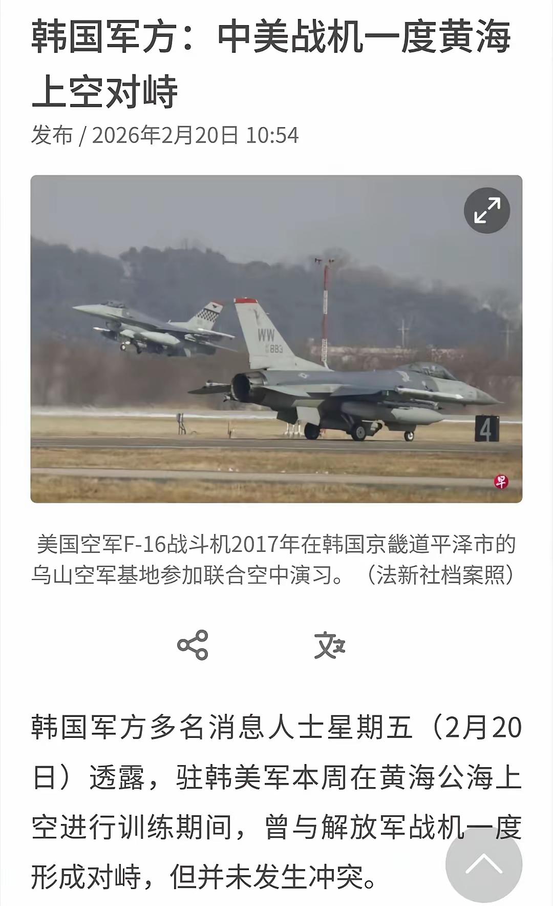 来自韩国媒体的报道称,今天(20号)10架驻韩美军的F-16在黄海上空试图接近中国防空识别区时,遭到解放军北部战区空军的战斗机队拦截。 这事儿看着是今天爆出来的,实际上发生在三天前,也就是大年初二的深夜。大家伙儿都在热热闹闹过年,美军的十几架F-16从乌山基地摸黑起飞,悄摸摸地溜达到黄海公海,贴着咱们防空识别区的边儿晃悠。这时间点选得,那叫一个“用心良苦”啊,不就是想在万家灯火的团圆夜里,给咱们心里添点堵吗? 他们这算盘珠子打得噼啪响,可咱们的飞行员没给这个机会。几乎就在美军机有所动作的同时,北部战区的战斗机就跟“神兵天降”似的出现在目标空域。这种反应速度,靠的不是什么运气,而是雷达屏幕上24小时不眨眼的眼睛,是飞行员座舱里时刻紧绷的那根弦。国防部发布在大年初一的那句“时刻准备着”,真不是一句空话,那是实实在在悬在对手头上的达摩克利斯之剑。 我得给大伙儿扒一扒这里头的猫腻。这次行动最反常的一点,在于它是驻韩美军的“单干”。以往在半岛附近晃悠,再怎么着也得拉上韩国小弟当幌子。这次呢?事前只通知韩国有训练,具体干嘛一概不说,完事儿了韩国军方还得通过媒体才知道“对峙”了,这脸打得啪啪响。说白了,在特朗普2.0时代的新战略里,驻韩美军早就不是单纯防着北边了,五角大楼那份《2026国防战略》报告写得清清楚楚,要拿韩国当支点,“更新”部署来对付更大的对手。 再说说这个所谓的“对峙”地点。美军非说自己在两个防空识别区的缝隙里,没越界。这话听着耳熟吧?就跟街溜子走路非要贴着你家墙根儿,还把手伸到你窗户边上晃悠,然后说“我没踏进你家门”一个德行。防空识别区虽然不是领空,但它是一条安全红线。你美军大半夜带着杀气来红线边上搞“模拟攻击”演练,还指望咱们当没事发生?解放军这次升空,就是明明白白告诉对方:甭管你在线的哪一侧,只要你敢露獠牙,我就敢亮剑。 这其实是一场意志的短兵相接。十多架F-16迎头碰上咱们严阵以待的拦截机队,最后为什么没真掐起来?因为咱们的飞行员用航线和姿态把话撂下了:再往前一步,就是不一样的性质。美军一看没便宜可占,只好灰溜溜地在那个“缝隙”里转悠一圈打道回府,最后还得通过媒体找补一句“双方均未进入对方识区”。这不是认怂是什么?这就是典型的“麻杆打狼两头怕”,但咱们怕的是他狼子野心,他们怕的,是咱们手里的真家伙。 各位读者你们怎么看?欢迎在评论区讨论。 歼16战机 f-16c战机 美国f16战机 美F-16战机 歼16出击 f16坠毁 美国F-16
