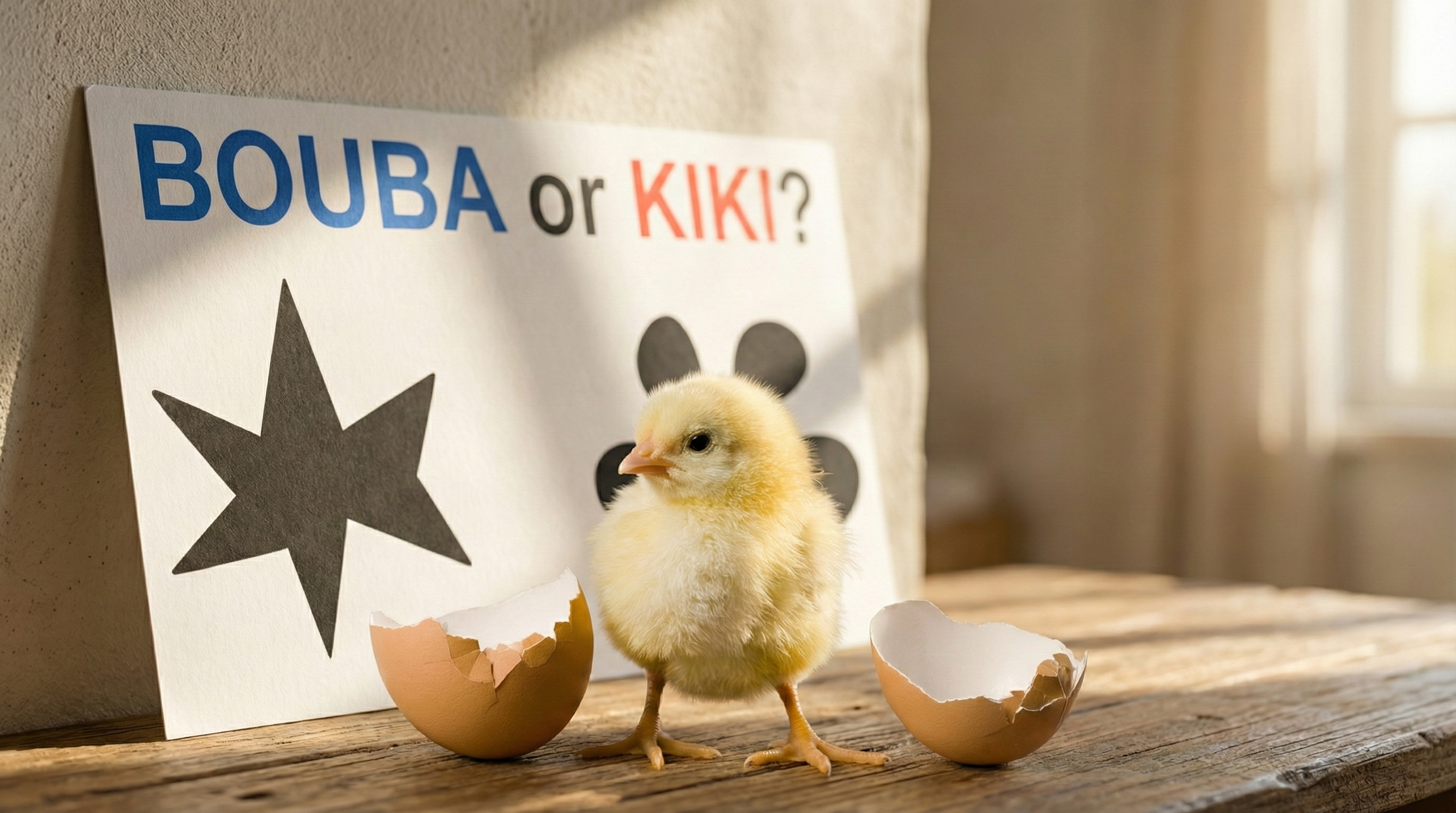 最初有人猜,是因为这两个词在不同语言里碰巧接近某些真实词汇,或者因为字形本身。你看,b、u、a 这些字母,比 k、i 可圆润多了。但研究者把实验做遍了各种语言和书写系统,这个效应依然稳稳出现,把字形这条路堵死了。然后有人发现,4个月大、还不会说话的婴儿也有这种偏好,文化和学习的解释也站不住脚。