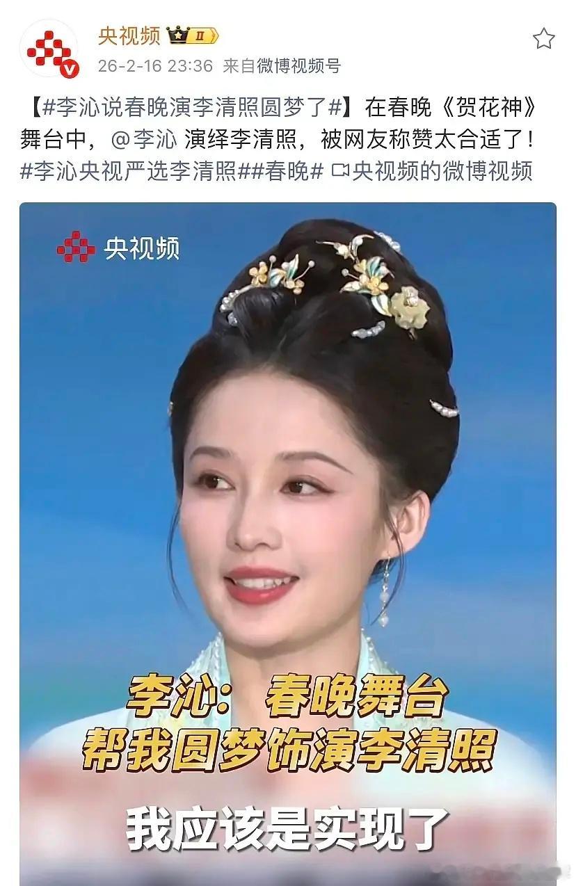 李沁采访的时候没有春晚的大滤镜特别美。