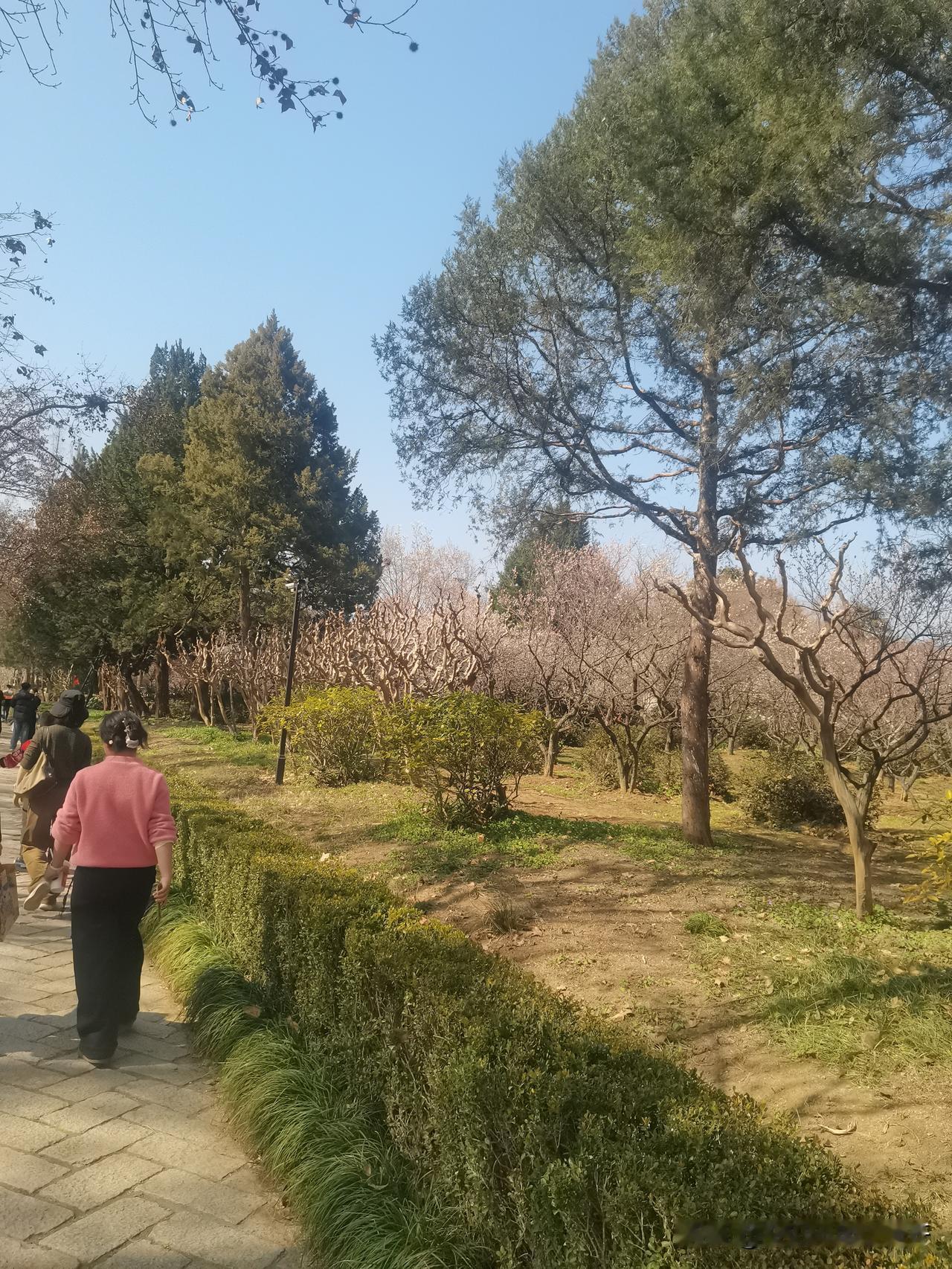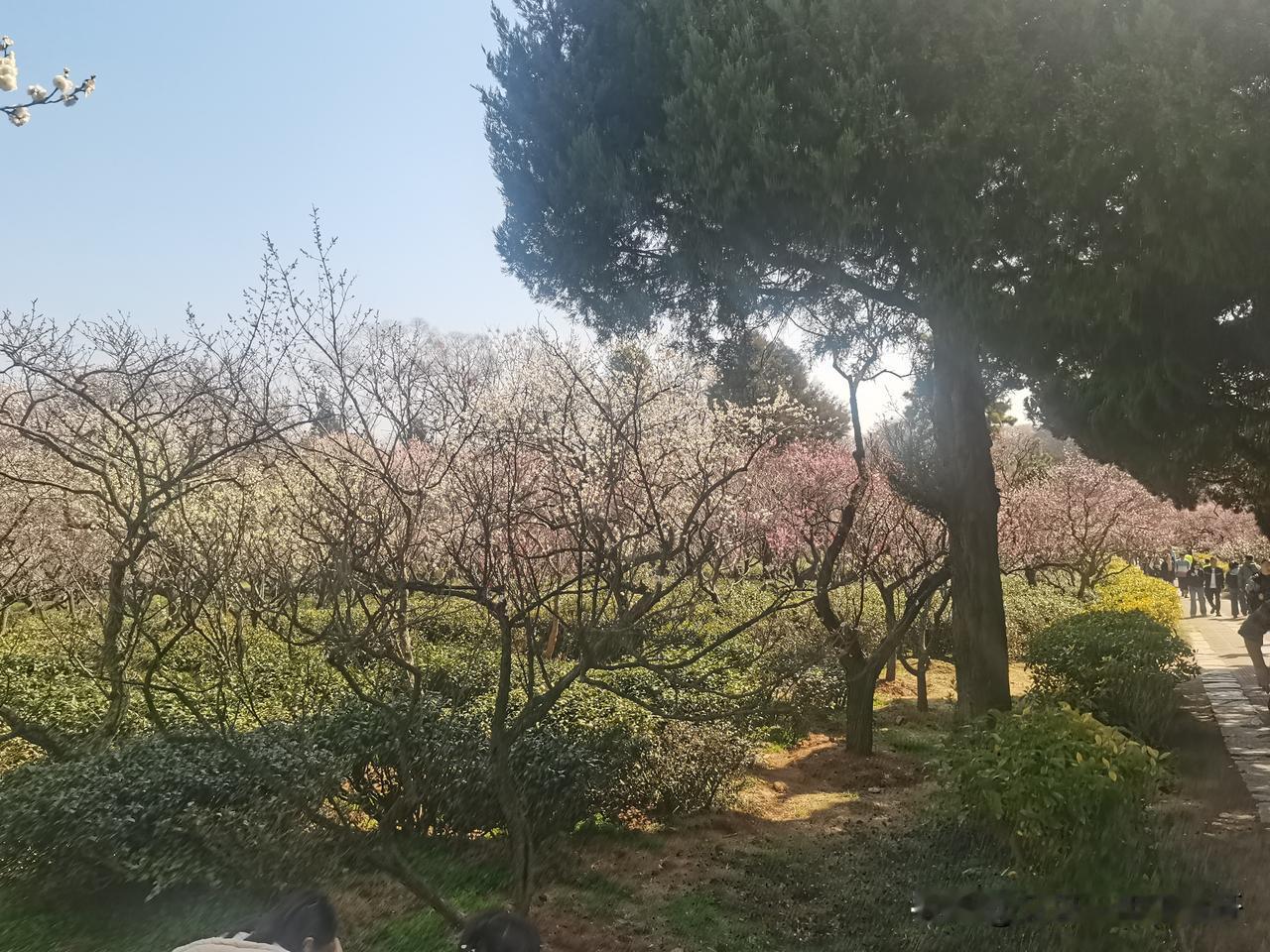 据说南京五天来了九百万游人 我觉得还行吧,起码还能正常走路。 从市区往风景区去的大巴都是免费的,有点意外!司机把收费的那个摄像头都转到后面去了,我上车还主动的,乖乖的扫码付钱,司机说免费[大笑]。 奔钟山风景区的一路上,司机像导游似的给讲解怎么玩,怎么坐车,真贴心。 买票进景区,服务人员提醒我说如果六十岁优惠,我只好摇头,不够呀[捂脸]。 我奔的梅花山,就想体验一下二月份南国的芬芳。 南京人是不太在意花海青山的,他们游玩的资源太富有了。 我想起去年三月份在吉林市,碰到几个大妈在小区假山上呼朋唤友的拍照,当时真心觉得挺可怜的,东北冬天太长了,三月份也是冰冷的一片。