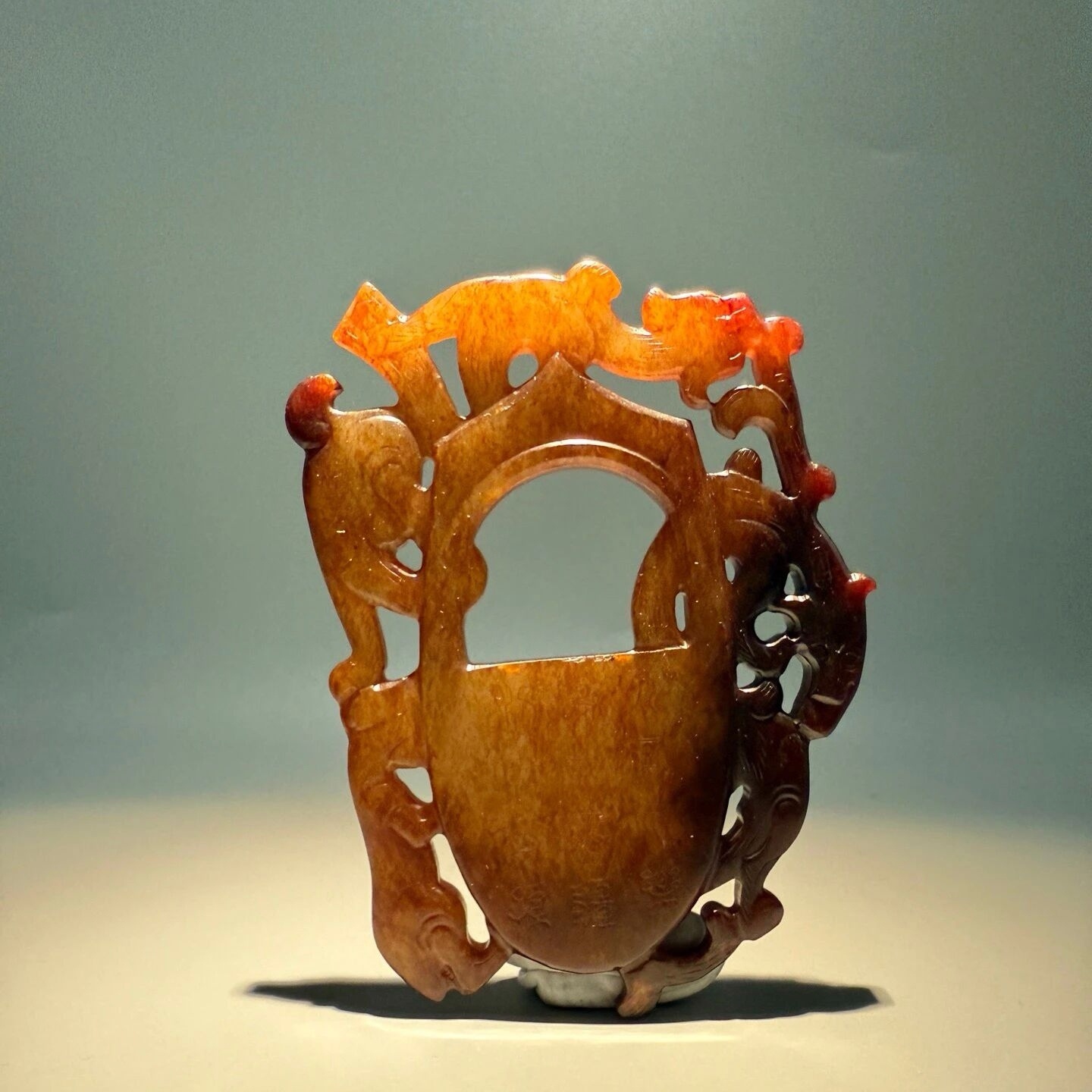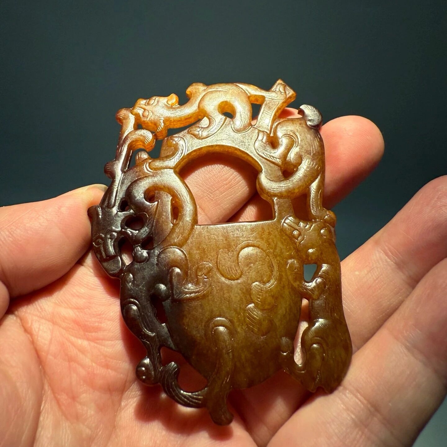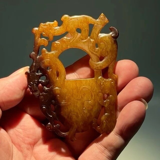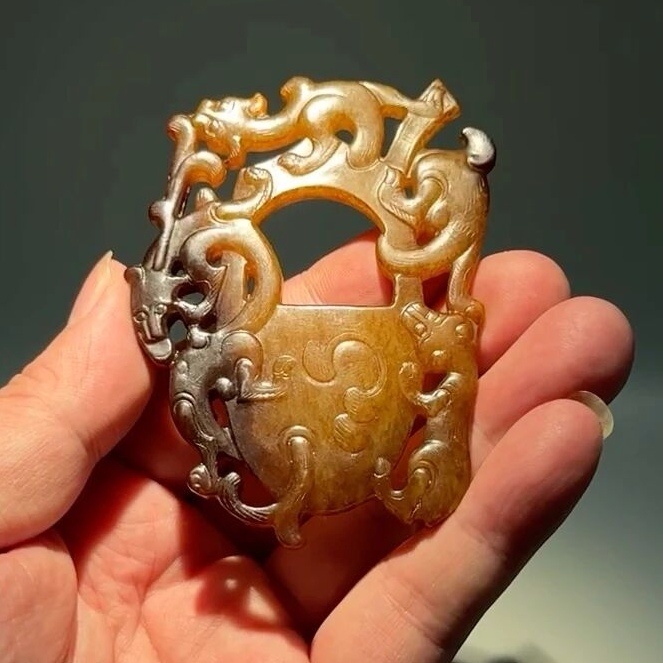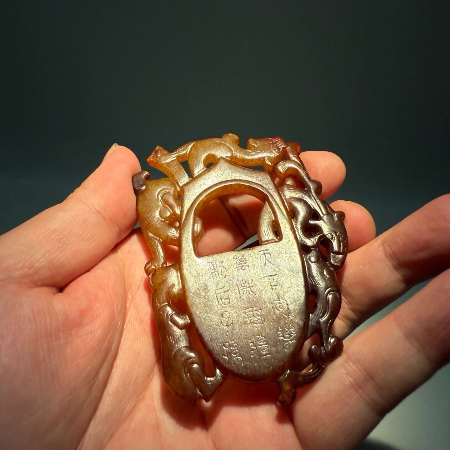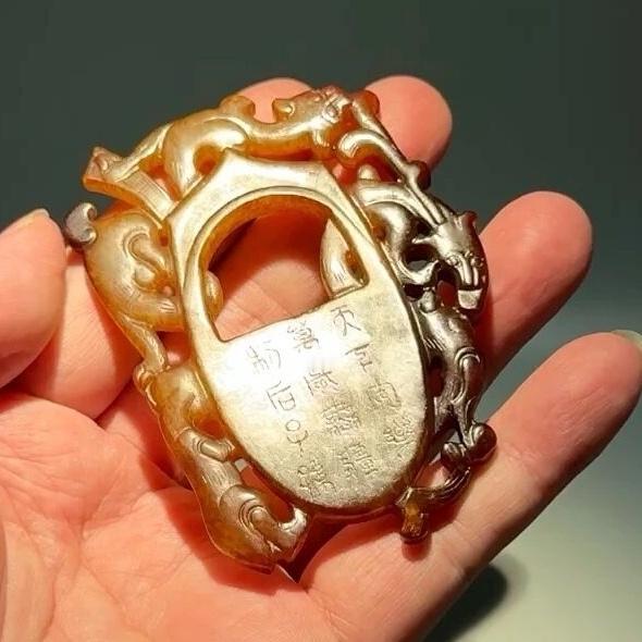 高古玉 非常奇特的汉代鸡心佩,背面还带有文字,熟旧感特别强烈,马年之际,奉献给粉丝们;酒足饭饱之后欣赏。 上海