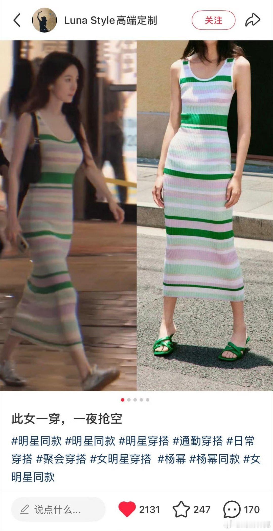杨幂带火吊带条纹长裙看预告的时候就挺印象深刻的