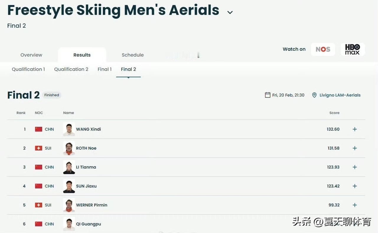 第四金来了!真正的顶峰相见!王心迪132.60分获得男子自由式滑雪空中技巧金牌🥇徐梦桃和王心迪夫妇二人双双获得金牌,这才是真正的顶峰相见啊!最后一位出场的瑞士大哥有点吓人,幸好没超过王心迪,裁判的计算器疯狂计算……小将李天马获得一枚宝贵的铜牌🥉后面中国队还有2个冲金点:自由式滑雪空中技巧男女混合团体,谷爱凌U型场地!
