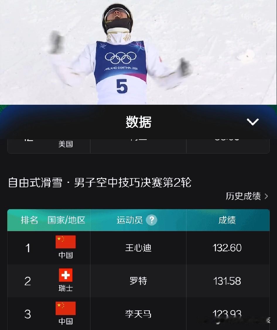 米兰冬奥会的赛场上,中国的冰雪迷又见证了一个新的奇迹!那就是第三次代表中国空中技巧队出现在世界奥运赛场的运动员王心迪在前两届都是以第14名成绩结束奥运较量之后,终于在这次米兰冬奥会上出色完成自己的动作而且提高了个人得分,并在决赛的最关键一跳当中拿到132.60的高分,不但锁定最后的冠军,还和自己的妻子徐梦桃一起实现了在同一届奥运会上双双登上男女空中技巧比赛冠军领奖台的壮举!王心迪也帮助中国冬奥代表团拼下第四金! 用现场解说的话来讲,就是这样的创纪录表现,很有可能前无古人,也大概率会后无来者!至少这种创纪录的表现证明了中国冰雪健儿在空中技巧这个项目上的绝对实力。 当然,在这次比赛当中,中国空中技巧队的其他运动员,也同样表现十分出色,4位参加比赛的运动员全部进入只有6个人参加的决赛争冠轮,另一位中国运动员李天马也以123.93分的高分,拿到一枚宝贵铜牌。而来自瑞士的名将罗特,则在预赛成绩相对排名并不十分靠前的情况下,决赛轮表现同样非常出色,以131.58分的高分拿到一枚银牌,他的这一成绩只比王心迪的成绩低了1:02分。可见这场决赛当中大家的竞争还是非常激烈,而王心迪超高的技术难度还有比赛表现力让他成功成为了最终的胜出者! 和自己的妻子徐梦桃一起比翼双飞,共同参加三届奥运会之后,终于一起站上奥运会同一个项目男女比赛的最高领奖台,双双实现升国旗、奏国歌的目标,也的确让人跟着一起开心、兴奋和感动。 赛后的采访环节,当现场记者要求王心迪对徐梦桃说点什么时,他说自己更想说的是徐梦桃的那一句——相信相信的力量。而且他也直言,不仅自己实现了奥运夺冠的梦想,而且妻子一直期待的夫妻两个人从都是世界冠军变成夫妻两个人都是奥运冠军的梦想,如今从梦想变为了现实。这样的一种结局确实颇有点王子公主的童话在延续的意味。 让我们再次恭喜王心迪,也恭喜徐梦桃,同样期待这两位运动员在双双帮助中国队在这两个项目上实现两夺金牌之后,后面的混合空中技巧的比拼当中中国队同样能收获期待的好成绩! 朋友们有什么想对王心迪和徐梦桃说的,大家都各抒己见,一起来交流一下吧!