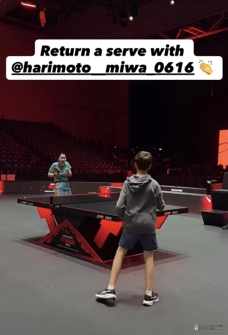 张本美和也已经到新加坡了。 张本美和这次新加坡大满贯赛也是身兼三项,她和早田希娜也要一起打女双了,和松岛辉空打混双,在全日锦比赛中,松岛辉空/张本美和是拿了混双冠军,两个人打的还是不错的。 这次女双日韩有两对跨协会组合:申裕斌/长崎美柚、大藤沙月/朱芊曦,其他协会的也有,感觉女双的实力都很厚实,这次国乒的女双是蒯曼/陈熠,也是只有一对儿。 今天张本美和和爸爸一起去上训了,看到在主场馆进行适应训练时,张本美和和迪亚兹一起练球了,在日本打T联赛她俩是一个俱乐部的,也很熟悉,迪亚兹这段时间一直在日本练球,迪亚兹也涨球了。 在练球的时候,还有球迷可以进去看球员训练,可以和球员互动,看到一个小朋友和张本美和互动了,他打出一个精彩球把张本美和惊到了,觉得那个球有点不可思议。