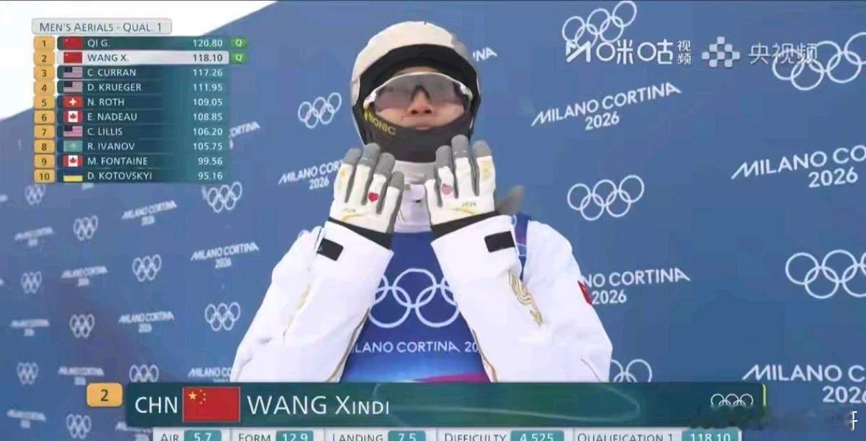 决胜负一跳——孙佳旭选择5.1的难度得到123.42分。李天马选择了5.1难度得到123.93分。王心迪选择了5.1的难度得到132.60分。齐广璞选择了5.0的难度失误了!瑞士的维尔纳也失败了!最后一个瑞士人选择了5.2的难度,131.58分!王心迪金牌自由式滑雪男子空中技巧决赛