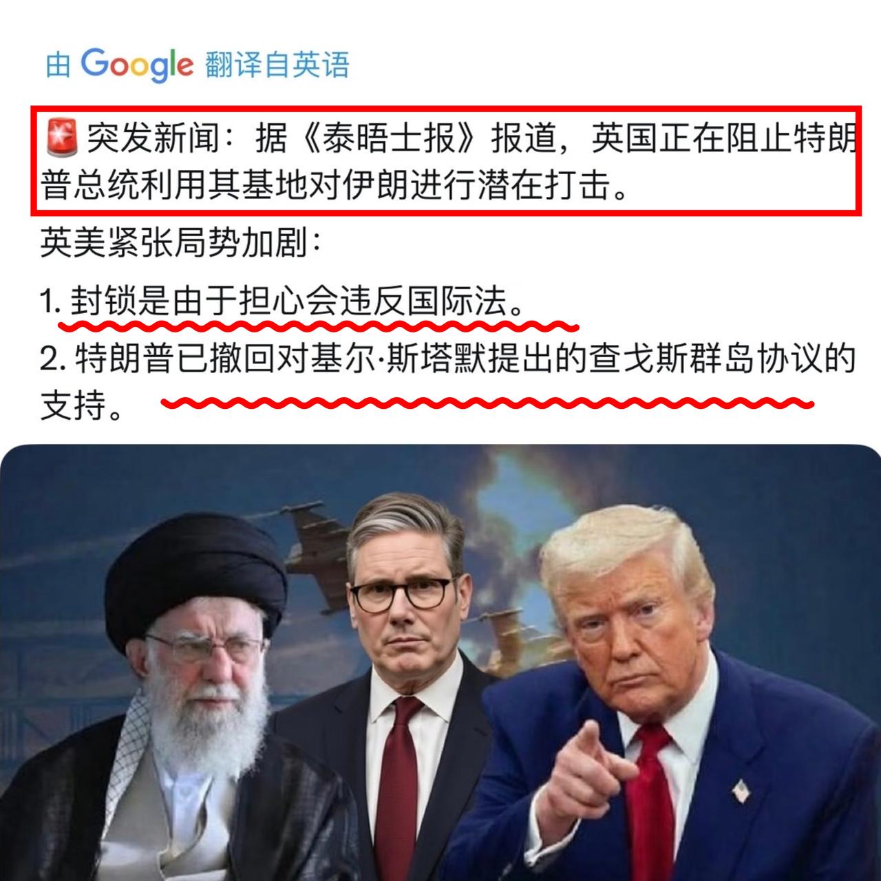 咱们老百姓看国际新闻, 经常一头雾水,看不懂的时候,就瞄一眼英国怎么做,英国这次拒绝给美国提供军事基地打伊朗,这事儿挺有意思。 英国在站队这件事上,历史上没怎么走过眼。二战以后美国打谁他跟着打谁,伊拉克、阿富汗,次次不落。 但这次突然怂了,理由是"怕违反国际法"。以前跟着打仗的时候,国际法也没少违反啊。 英国不傻。他发现跟着美国混,好处没捞着,锅倒是背了不少。特朗普上来就喊"美国优先",连盟友的羊毛都想薅。 “你打你的,跟我没关系。” 这不是跟美国翻脸,是给自己留后路。 斯塔莫前阵子访华,回去就说"八年没去是个错误",意思也很明白,得找新朋友了。 英国这处境,说就是日落帝国的挣扎。想保持点尊严,又想抱个靠谱的大腿。 他的这是给全世界提了个醒:别急着站队,这年头,背后捅刀的多少身边人,多交朋友多条路总是没错。 大家怎么看这事?