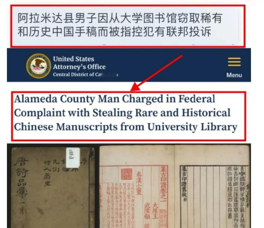 连孙子兵法都没想到,38岁的美国华裔男子,仅凭一招偷梁换柱,就把加州大学的中国文献,给偷运回了中国。 这个 38 岁的华裔男子叫杰弗里・应,从 2024 年开始,他就给自己取了个日本化名 “藤森”,靠着这个身份,多次走进加州大学洛杉矶分校的图书馆,借阅馆里收藏的中国古籍。 这些古籍可不是普通的旧书,每一本都有好几百年的历史,是咱们老祖宗一笔一划写下来的珍贵文献,早年间因为各种原因流落到了海外,被封存在了美国的图书馆里。 很多人可能不知道,想从国外的图书馆里把这些古籍拿回来,正规路子有多难。 别说把书带走,就算是想完整复印、拍照,都有一堆的限制和门槛,更别说把原件带回中国了。 但这个华裔小伙,就认准了一个死理:这些东西本来就是我们中国的,就该回到它该去的地方。 为了实现这个目标,他下了常人不敢想的苦功夫。 他没有硬抢,也没有偷偷摸摸撬柜子,而是专门去学了古籍复刻的手艺,硬生生把自己练成了一个复刻高手。 从图书馆把古籍借出来之后,他就照着原件,一比一复刻出赝品,从纸张的年代质感、墨迹的深浅颜色,到书页的磨损痕迹、装订的样式细节,全都仿得一模一样,最后把复刻好的赝品还给图书馆,把真品留了下来。 就靠着这招偷梁换柱,他瞒过了图书馆所有的管理员,一次又一次地把珍贵的中国古籍从图书馆里带出来,再通过各种方式运回中国。 前前后后算下来,他带回来的这些古籍,总价值已经超过了 140 万人民币,而且根据后来美国方面的调查,他的这个行动,其实早在 2020 年就已经开始了,这么多年里,从来没有被人发现过破绽。 直到后来图书馆清点藏品,才发现了不对劲,报了警之后,美国警方在他住的地方,只搜到了一些空白的抄本和制作赝品用的工具,那些真正的古籍原件,早就已经平安回到了中国。 这事传到网上,很多人都感慨,这才是把老祖宗的智慧用对了地方。 咱们都知道,从近代以来,有数以千万计的中国文物、古籍流落到了海外,其中光是国家一二级的珍贵文物,就有上百万件,很多都是当年被抢、被骗出去的,如今堂而皇之地被摆在海外的博物馆、图书馆里,当成他们的藏品。 想要通过正规的外交渠道、法律途径把这些东西追回来,难度超乎想象。 就拿之前的子弹库帛书来说,我们花了整整 79 年,找齐了所有的证据链,经过了无数轮的协商,才终于让美方归还了其中的两部分。 更多的古籍文物,就这么躺在海外的机构里,我们看得见,摸得着,却很难让它们堂堂正正地回家。 也有人说,美国那边指控他是盗窃,可换个角度想,这些古籍本来的根就在中国,是我们老祖宗留给子孙后代的东西,当年被用不正当的手段弄到了海外,如今有人用这样的方式把它们带回祖国,让这些古籍能被中国人研究、传承,这到底是错还是对? 说到底,这些写着中国字、记着中国历史的古籍,只有回到中国的土地上,才算真正回到了家。