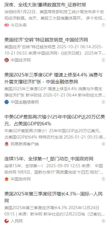 中美GDP差距再次缩小!25年中国GDP达20万亿美元,占美国GDP的64%。 麻烦看官老爷们右上角点击一下“关注”,既方便您进行讨论和分享,又能给您带来不一样的参与感,感谢您的支持! 2026 年 1 月国家统计局公布的 2025 年经济数据显示,中国 GDP 折合美元达 20 万亿美元,占美国同期 GDP 的 64%。这一数据不仅在国内引发热烈讨论,也让美国各界高度关注,而这一占比并非偶然冲高,是中国经济多年稳步发展的趋势累积结果。 二十年前,中国 GDP 还不到美国的五分之一,那时说起 “赶超美国”,更多只是国人的一种情绪表达,没人能想到这份期待会如此快地照进现实。如今中国稳稳坐稳全球第二大经济体的位置,经济增长早已从拼速度转向提质量,发展的底盘越筑越牢。 中国制造业增加值已经连续 15 年位居全球第一,这一数据是实打实的产业实力体现。这些年里,高端制造、数字经济等新兴领域不断补位发力,和传统制造形成互补,让中国经济的产业结构更合理,抗风险能力也随之提升。 反观美国,虽然名义 GDP 依旧保持高位,但增长的背后离不开高通胀和美元加息周期的推动,剔除通胀因素后,实际的经济扩张表现并不亮眼。和中国实打实的经济增长不同,美国的经济发展正被诸多结构性问题困扰。 截至 2025 年 10 月,美国联邦债务总额已突破 37.9 万亿美元,债务高企的同时还伴随着财政赤字失控的问题,制造业空心化的现状也迟迟没有改善。这些问题相互交织,让美国经济的内生增长动力持续不足,和中国的发展状态形成鲜明对比。 中国始终重视实体经济,制造业占 GDP 比重长期保持在 25% 以上,这一比例为经济发展提供了坚实的实体支撑。在高铁、光伏、电动汽车等多个领域,中国企业已经形成了全球竞争力,在国际市场上的话语权不断提升。 同时,中国有 14 亿人口构成的庞大内需市场,这是独有的发展优势,也成为经济内循环的重要支点,让中国经济在面对外部环境变化时,有足够的缓冲空间。而美国的实体产业早已失去了往日的完整性,产业韧性也远不及中国。 美国深知实体产业的重要性,却无力快速改变当前的产业现状,看到中国在实体经济和高端制造领域的快速发展,便在科技、贸易等领域频频对中国施压,试图通过非市场手段阻碍中国产业升级的步伐,这背后其实是对中国经济发展的忌惮。 2025 年中国 GDP 达到 20 万亿美元,是中国经济发展路上的重要节点。这份成绩的取得,是在全球贸易摩擦加剧、供应链持续波动的大环境下实现的,也让 IMF、世界银行等国际机构纷纷上调了对中国的经济增速预期。 当然,我们也清醒地认识到,中国经济发展并非一帆风顺,依旧面临着不少挑战。房地产行业的去杠杆进程仍在推进,人口老龄化的趋势也在加剧,这些问题都需要在发展中逐步解决,考验着后续的政策制定和执行能力。 但挑战背后,中国经济也有着诸多发展优势。国家层面的政策调控能力强,能根据经济发展态势及时出台针对性举措,产业升级的步伐也从未停下,高端制造、新能源等领域的持续发力,正在为经济增长注入新的动力。 随着经济发展进入新阶段,中国经济的核心任务也从过去的 “追赶” 转向了如今的 “稳住” 和 “走远”。不再一味追求经济增速,而是更看重发展的质量和可持续性,力求让经济发展的步伐更稳,走得更长远。 中国经济的稳步发展,也在深刻影响着全球经济格局。作为全球第二大经济体,中国的经济发展状态不仅关乎自身,也牵动着全球经济的脉搏,推动着全球经济权力结构从单极向多极格局演变,为全球经济发展注入更多稳定性。 未来,在坚持高质量发展的前提下,中国经济依旧有着不小的发展潜力。庞大的内需市场、完整的工业体系、持续的产业升级,都是中国经济的底气所在。而中国也会继续坚持对外开放,与世界各国共享发展机遇,实现互利共赢。