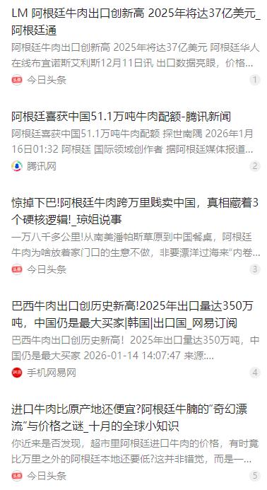 阿根廷为啥非得跑一万多公里,把牛肉便宜卖到中国?因为他们的牛肉,在阿根廷附近区域,根本卖不动。其次,大家对“海运”的成本,也没有具体概念。 麻烦看官老爷们右上角点击一下“关注”,既方便您进行讨论和分享,又能给您带来不一样的参与感,感谢您的支持! 阿根廷有着 “世界肉库” 的名号,潘帕斯草原的优质牧场养出了品质上乘的牛肉,可这些牛肉在南美周边市场却根本走不动货,最后只能跨越一万多公里的太平洋,不远万里卖到中国,还能保持亲民的价格,这背后可不是简单的生意选择,而是实打实的市场现实和贸易逻辑。 阿根廷的牛肉产量常年居高不下,2024 年当地牛肉出口量就达到 93.3 万吨,国内四千多万人口的消费能力完全消化不了,出口成了盘活牛肉产业的关键。可放眼周边的南美市场,阿根廷牛肉却处处碰壁,巴西作为全球牛肉出口第一大国,靠着低价走量的策略,把南美、加勒比海的中低端市场牢牢攥在手里。 阿根廷牛肉品质高但成本也高,根本没法和巴西拼低价,想挤进周边市场难上加难。而智利、乌拉圭这些邻国,要么本土牛肉自给自足,要么自身就是牛肉出口国,乌拉圭甚至有全球最严的牛肉可追溯体系,对阿根廷牛肉本就没有需求,周边市场的天花板低得可怜。 把目光投向北美市场,阿根廷牛肉同样迈不过去那道坎。北美有着严苛的检疫标准,单是抗生素残留这一项,就把不少阿根廷肉企挡在门外,再加上高额的进口关税和配额限制,就算能通过检测,陆运横跨美洲大陆的运费也会让成本飙升,最后卖得越多亏得越多。 前有周边市场的挤压,后有北美市场的高壁垒,阿根廷牛肉产业陷入了 “卖不动” 的困境,而远在东方的中国,成了阿根廷牛肉的最佳出路。很多人都好奇,跨着万里海运,运费难道不会让牛肉价格暴涨?其实大家都低估了现代海运的成本优势,也忽略了规模效应的魔力。 如今的远洋冷链货轮堪称 “海上城堡”,一次就能装载数万吨冷冻牛肉,燃油、人工、维护这些固定成本,平摊到每一公斤牛肉上就变得微乎其微。从阿根廷到中国,每公斤牛肉的海运成本仅几毛钱,比国内不少短途陆运的单价还要低,这个成本几乎可以忽略不计。 而且现代冷链技术已经相当成熟,牛肉从屠宰场出来就进入全程低温冷藏,在海上漂行半个多月,口感和新鲜度都能得到保障。到了中国港口后,清关流程也十分高效,不会出现长时间滞留的情况,进一步降低了牛肉的损耗和仓储成本,物流端的损耗被压到了最低。 除了海运的成本优势,中阿之间的贸易政策更是为牛肉贸易添了一把火。很多人以为阿根廷牛肉对华出口是零关税,实际是中阿约定了 51.1 万吨的年度出口配额,配额内享受 12.5% 的优惠关税,超配额则触发 55% 的附加关税,且配额每年还会递增 2%。 这份贸易协议给了阿根廷稳定的市场预期,相比澳大利亚的进口数量限制、美国因贸易摩擦几乎退出中国牛肉市场的现状,阿根廷牛肉在华的贸易优势十分明显。同时阿根廷自身也下调了牛肉出口税,内外政策结合,直接砍掉了一大截贸易成本。 阿根廷牛肉能顺利进入中国,最核心的原因还是中国有着全球最大的牛肉消费市场,是当之无愧的全球第一牛肉进口国。2024 年中国进口牛肉 287 万吨,占全球牛肉进口总量的 17% 还多,国内牛肉产量跟不上消费需求,进口缺口常年存在。 而且中国消费者对南美牛肉的接受度极高,2024 年进口的牛肉中 76% 都来自巴西、阿根廷、乌拉圭这三个南美国家,阿根廷摸准了中国市场的喜好,针对性出口带骨、去骨牛肉,2024 年 10 月对华牛肉出口量就占了当月总出口量的 73%。 稳定的市场需求让阿根廷牛肉有了固定的销路,2024 年阿根廷对华牛肉出口额达到 19.8 亿美元,占其牛肉出口总收入的近七成,每五块中国进口的冷冻牛肉中,就有一块来自阿根廷,中国成了阿根廷牛肉最核心的海外市场。 阿根廷牛肉远渡重洋卖到中国,最终实现了中阿的互利共赢。对阿根廷来说,盘活了原本 “卖不动” 的牛肉产业,2025 年其牛肉出口额预计能达到 37 亿美元,较 2024 年增长 25%,牛肉产业的发展也带动了当地牧场、加工、物流等相关行业的就业。 对中国消费者来说,阿根廷牛肉的进入丰富了市场选择,让大家能以亲民的价格吃到优质的草饲牛肉,填补了国内牛肉市场的缺口。而中阿的牛肉贸易,也让南美优质的农牧资源和中国庞大的消费市场实现了精准对接,是全球供应链优化的典型体现。 从阿根廷潘帕斯草原到中国百姓的餐桌,这一万多公里的距离,在现代物流技术和全球化贸易体系下,早已不再是障碍。阿根廷牛肉的万里之旅,印证了全球化的核心逻辑:效率和规模能打破地理的限制,让全球的资源实现最优配置。
