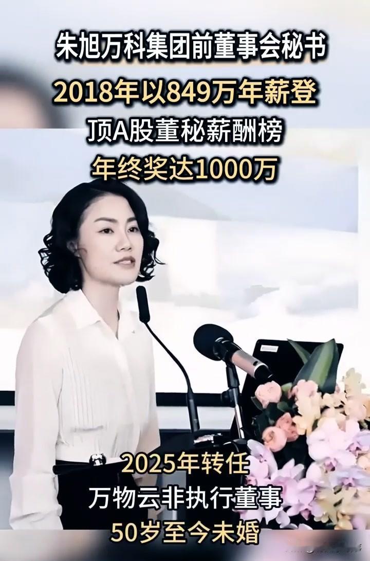 她被称为中国最贵的女秘书!年薪849万,虽已50岁了,还像个少女。这位女秘书就是朱旭,她是中国最赚钱女秘书,一年年终奖1000万,但是49岁至今未婚,到底是为什么呢? 先给大家掰扯清楚,这可不是大家印象里端茶倒水、整理文件的普通秘书,人家是万科董事会秘书,正儿八经的上市公司高管,懂法律、通财务、熟资本运作,是公司实打实的“定海神针”。 当年轰动资本市场的宝万之争,堪称商业战场的生死局,多少高管乱了阵脚,朱旭却稳得像块磐石。她连续72小时连轴转,扒股权结构、理利益关系,硬生生牵头设计出事业合伙人制度,把万科管理层持股比例从0.41%直接拉到4.14%,牢牢守住了公司的话语权,这一仗,直接让她在资本圈封神。 2017年深交所下发监管函,市场一片恐慌,就怕万科股价暴跌。朱旭连夜梳理所有资料,用最精准的专业数据逐一回应质疑,没让公司市值蒸发一分钱;2018年“万科退出房地产”的谣言疯传,她站在发布会现场,一句话就厘清逻辑、稳住市场信心,这份临危不乱的底气,全是硬实力堆出来的。 她的高薪,从来不是天上掉馅饼。早年她是湖南公务员,捧着人人羡慕的铁饭碗,却觉得日子没奔头,果断辞职下海。刚进券商时,月薪才3000块,她是办公室最早到、最晚走的那个,主动揽活、啃专业书、跑一线调研,一步一步从普通研究员,熬成了资本圈的顶尖高手。2016年加入万科,年薪直接翻近十倍,2018年拿到849万年薪+1000万年终奖,年度收入近2000万,这钱,是她用一次次硬仗拼来的,一分都不亏。 至于49岁至今未婚,根本不是什么“人生缺憾”,而是她清醒的主动选择。她把所有时间和精力,都投入到了自己热爱的事业里,活成了经济独立、精神自由的模样。她不需要靠婚姻来证明自己的价值,也不被“女人到年纪就得结婚生子”的世俗规矩绑架。50岁依旧状态在线、气质如少女,靠的不是昂贵的保养品,是内心的笃定和不依附任何人的底气。 总有人对单身女性评头论足,觉得不结婚就是不完整。可朱旭用一生告诉我们:人生的幸福,从来没有统一标准答案。能在自己的领域做到顶尖,能把日子过成自己想要的样子,能对自己的人生全权做主,这就比什么都珍贵。 各位读者你们怎么看?欢迎在评论区讨论。