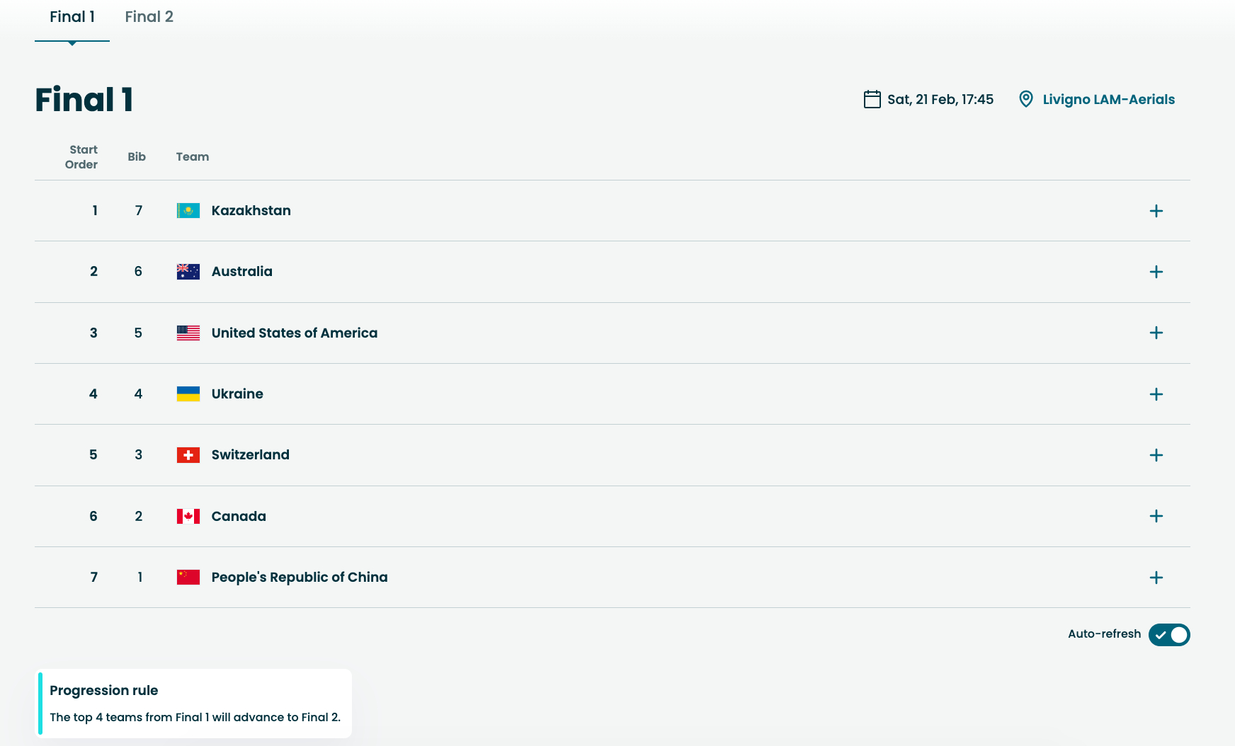 🎿米兰冬奥会自由式滑雪空中技巧的最后一个项目,混合团体决赛将在北京时间2月21日17:45进行,中国队在第7位登场,徐梦桃、王心迪、李天马出战。