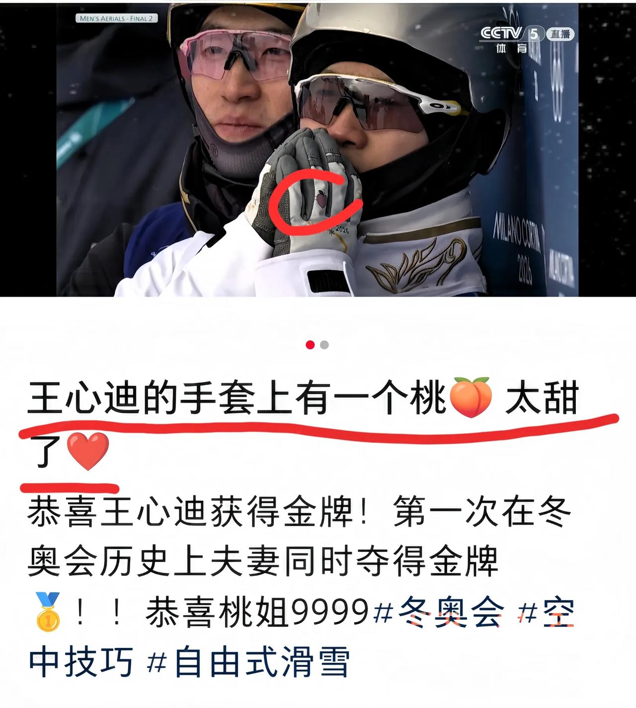 徐梦桃拿冠军我服气,王心迪拿冠军我也认,但我真没料到,他比赛手套上还印着个桃子🍑,这波狗粮直接把我喂撑了! 这一届运动员是不是不仅比成绩,还得比谁更会撒糖啊? 刚看完王心迪比赛拿了金牌,本来挺激动的,结果镜头一拉近,我心态崩了。 这大哥比赛手套上居然藏着小心机!右手无名指上印了个大桃子🍑,左手还对着印了个红心❤️。 大家都知道他老婆是徐梦桃吧?这桃子指代谁还用说吗? 前脚媳妇刚拿完金牌,后脚老公带着“爱的信物”也夺冠,这也太凡尔赛了,这种顶级浪漫还要不要我们单身狗活了? 想想徐梦桃之前说备孕的事儿,这俩奥运冠军的基因凑一块,以后生出来的娃估计落地就能翻跟头吧。 这哪里是看比赛,简直是被按头吃了一顿高热量狗粮,不过这碗饭我干了,确实般配。 这对奥运冠军夫妻也太甜了吧!你们被这波狗粮甜到了吗?快来评论区聊聊~