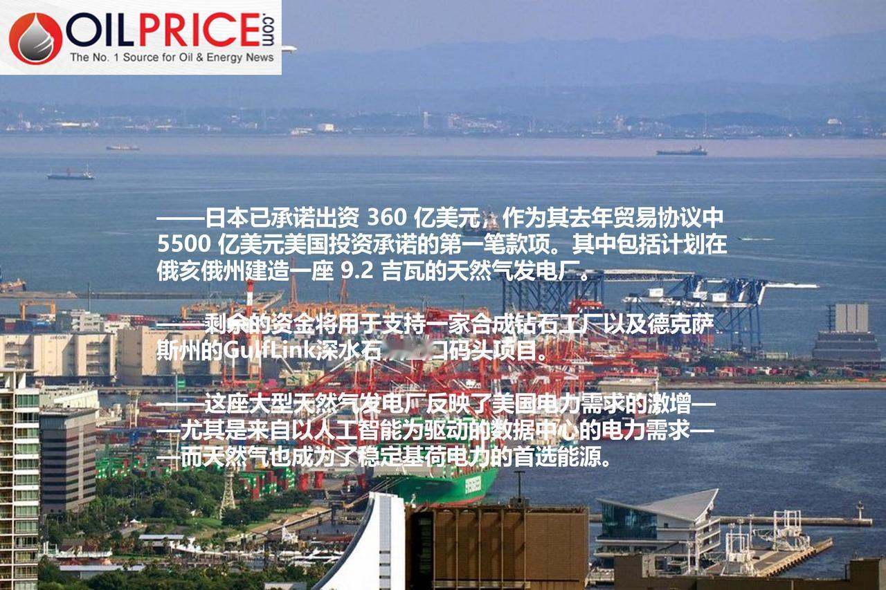 日本向美国能源霸主地位押下 360 亿美元的赌注 日本已根据一项 5500 亿美元的投资计划做出了首批承诺,该计划是其与特朗普总统达成的部分贸易协议的一部分。这首批承诺价值 360 亿美元,其中包括商务部部长霍华德·卢特尼克所称的“历史上规模最大的天然气发电设施”。 去年夏天,美国和日本达成了一项贸易协议,该协议包括将日本进口商品的拟议关税从 25% 降至 15%,以及日本向美国经济提供 5500 亿美元的投资承诺。根据该协议,日本还承诺扩大美国商品(包括汽车、农产品和能源)的市场准入。 这笔首轮投资中的大部分资金将用于建造一座总装机容量为 9.2 吉瓦的大型天然气发电厂。卢特尼克部长在交易完成后发表声明称:“我们将提高电网的可靠性,扩大基荷电力供应,并以实惠的价格为美国制造业提供能源支持。”该发电厂将建在俄亥俄州。该设施将由日本软银集团旗下的 SB 能源公司运营。 其余资金将分别投入到一家合成钻石工厂和位于墨西哥湾的深水石油港口项目中。卢特尼克表示:“该项目预计每年将为美国原油出口带来 200 至 300 亿美元的收益,为我们的炼油厂保障出口能力,并巩固美国作为世界主要能源供应国的地位。” 本月早些时候,特朗普政府批准了这一深水石油港口项目。该项目由Sentinel Midstream公司牵头,位于得克萨斯州的GulfLink设施的日均原油出口量将达到 100 万桶。此次批准是联邦政府通过石油和天然气出口来增强美国能源主导地位的举措之一。 “德克萨斯州的GulfLink项目证明,当我们削减不必要的繁文缛节并放开化石燃料行业时,我们既能在国内创造就业机会,又能为国外带来稳定。”当时的运输部长肖恩·杜弗在给路透社的声明中说道。“这个至关重要的深水港口将使美国能够比以往任何时候都更快地出口其丰富的资源。”在关于日本交易的说明文件中,商务部表示,这个深水设施将在 20 年内创造 4000 亿至 6000 亿美元的收益,并推进特朗普总统的能源主导地位议程。 去年与特朗普达成贸易协议、以避免美国对本国出口产品征收高额关税的大多数国家,都明确做出了能源进口承诺。而关税威胁之所以能成为实现能源主导地位目标的有力手段,正是源于这一因素。在这方面,最引人注目的承诺当属欧盟承诺购买价值 7500 亿美元的美国石油和天然气。这一承诺在分析人士看来是不可能实现的,原因在于诸如相关商品的供应量有限、消费限制以及价格因素等实际因素。 历史上最大的天然气发电厂很可能是对电力需求激增(更确切地说是基荷电力需求的激增)的回应,而这种需求的增长主要由大型科技公司之间的竞争加剧所推动,尤其是数据中心的大量涌现。本周早些时候,国际能源署表示,全球电力需求正以 15 年来最快的速度增长。具体到美国而言,2025 年的电力需求增长了 2.1%,预计到 2030 年每年将增长近 2%。国际能源署指出,数据中心的迅速扩张将推动这一增长的一半。 天然气已成为人工智能竞赛中的最大赢家,与核能并驾齐驱。两者都能提供数据中心所需的那种不间断的电力——全天候、持续稳定的电力。然而,核能的建设周期更长,成本也更高,这就是为什么天然气发电厂获得了优先地位。