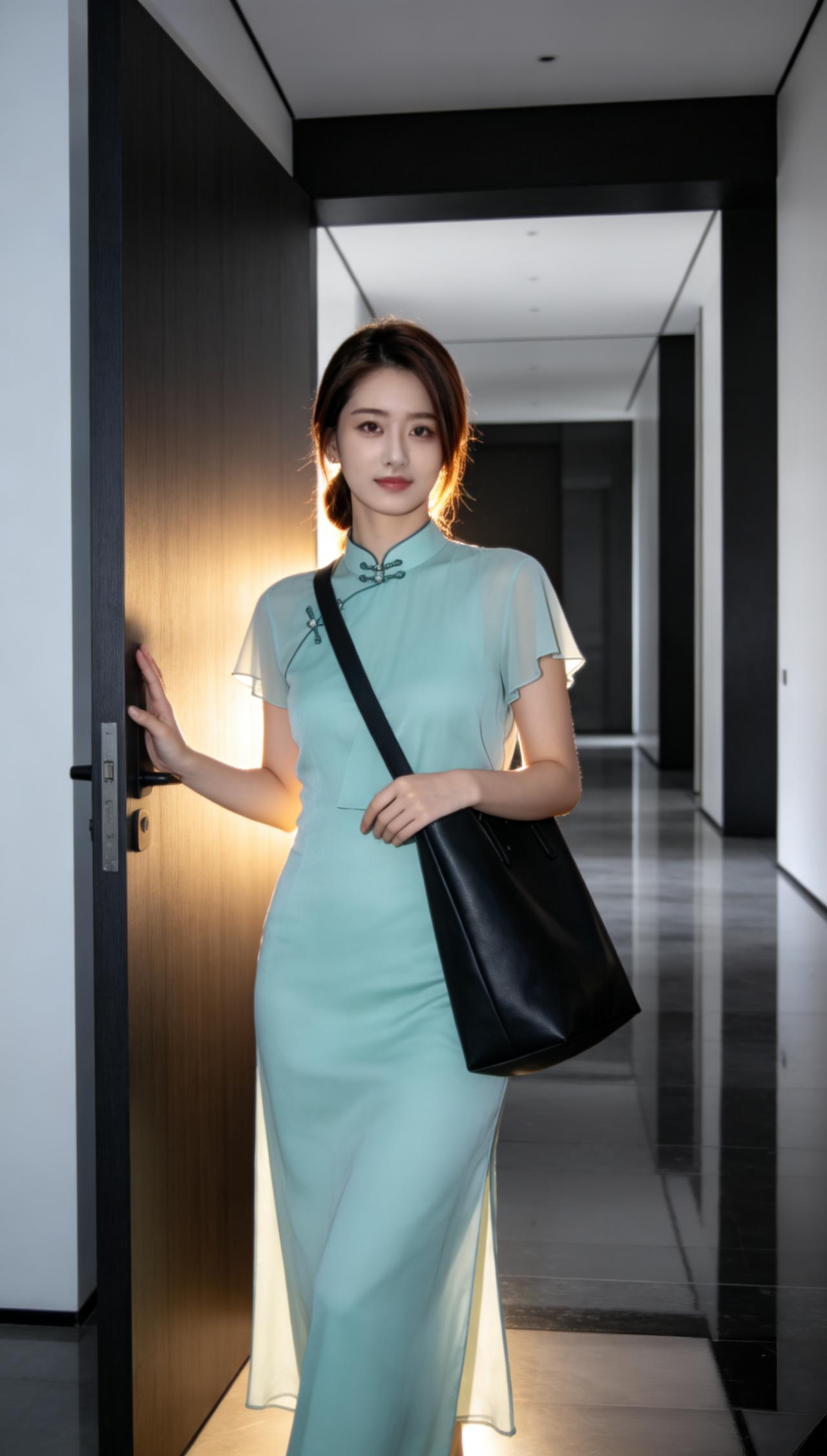 一股清风吹拂的感觉。完美的身材才能支撑起旗袍的美丽。