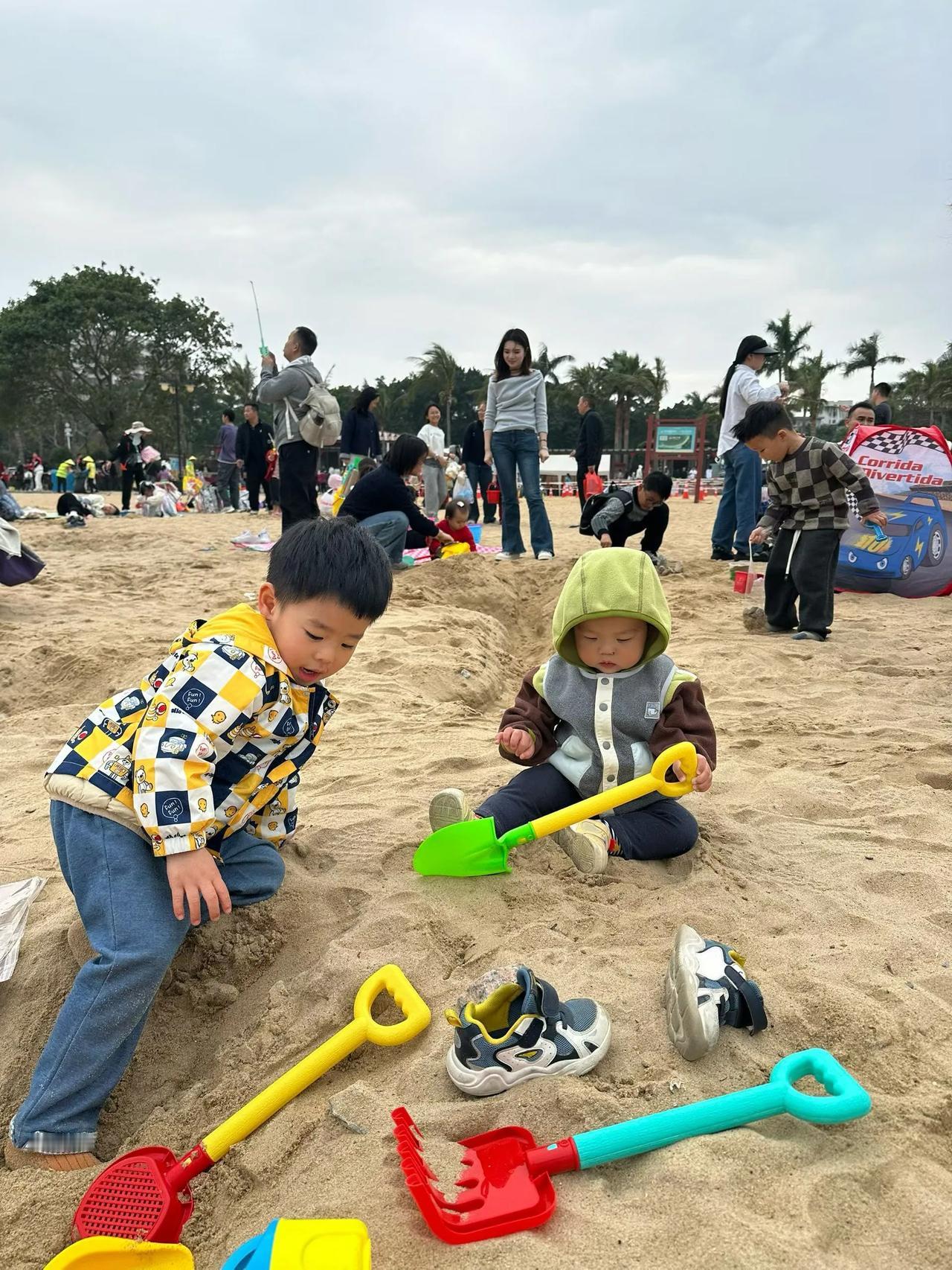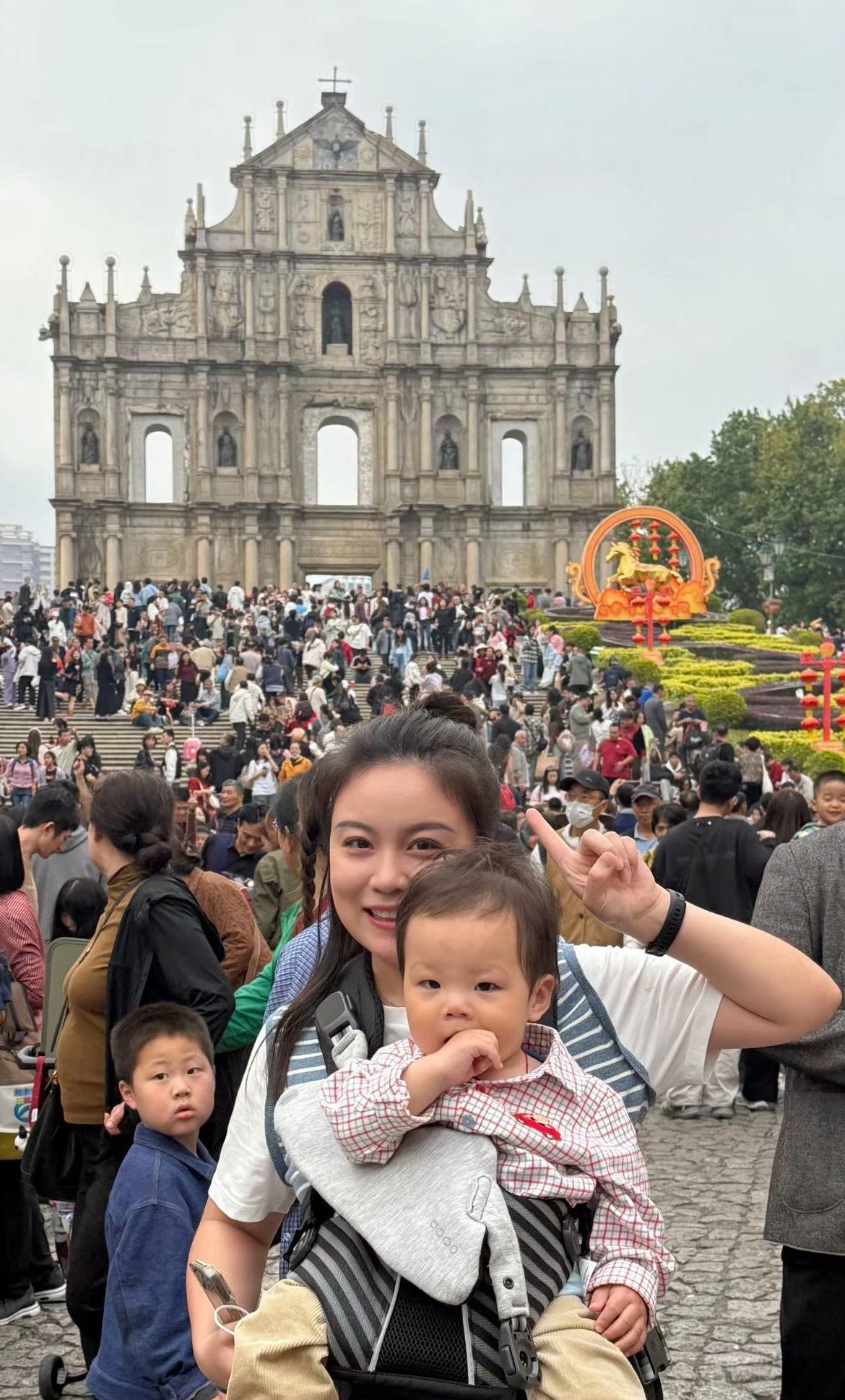 今年春节期间,侄女和侄女婿带着刚满1岁的宝宝,赴广州珠海澳门等地旅游度假。 侄女和侄女婿,在成都工作和生活,正好今年春节放9天长假,平时她们工作辛苦,所以假期就安排了这次亲子旅。 宝宝刚满周岁,学会了走路。父母想带他看外面精彩世界,可他年纪太小,啥也不知道。2月13日,她们一家从成都飞赴广州,刚下了飞机,宝宝被飞机吓得跑的飞快(平时他走路还不太稳呢)到广州长隆看国际大马戏表演,精彩纷呈的节目,他却没有兴奋点。 到了珠海玩沙滩,宝宝哪里知道玩沙子的乐趣,却把沙子撤在衣领里,觉得凉嗖嗖好玩。 到了澳门,宝宝这几天玩得太累了,侄女只得把他挂在胸前,看街上节日人山人海的热闹景象,宝宝睁着好奇的双眼东张西望,也算过足了眼瘾,这一趟旅游值了。[赞][福][玫瑰][捂脸]