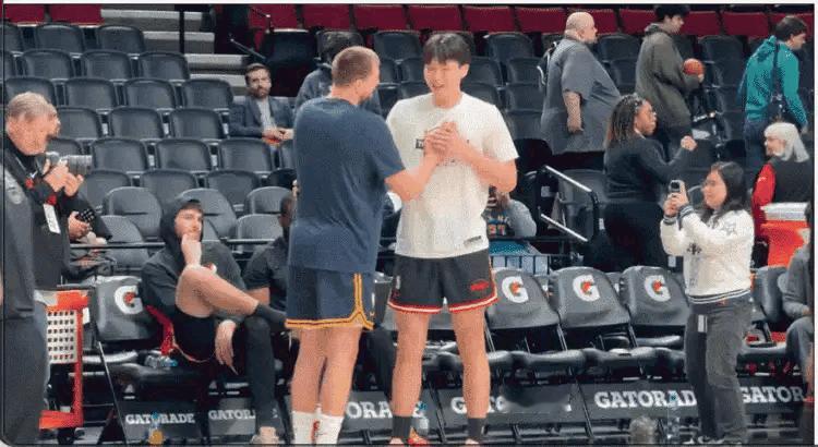 在今天开拓者主场迎战掘金的赛前,发生了非常温馨和谐的一幕。在比赛开始之前,开拓者新秀杨瀚森和偶像约基奇聊的热火朝天,两人在亲切交流之后拥抱致意,场面看起来非常的温馨和谐。素有“中国约基奇”之称的杨瀚森终于和偶像有了一次真正的友好交流,希望杨瀚森能够在今天的比赛中得到和约基奇正面交手的机会。