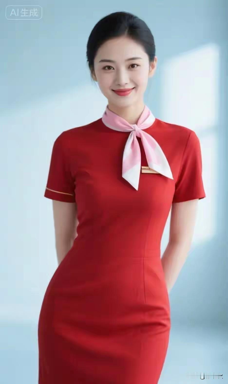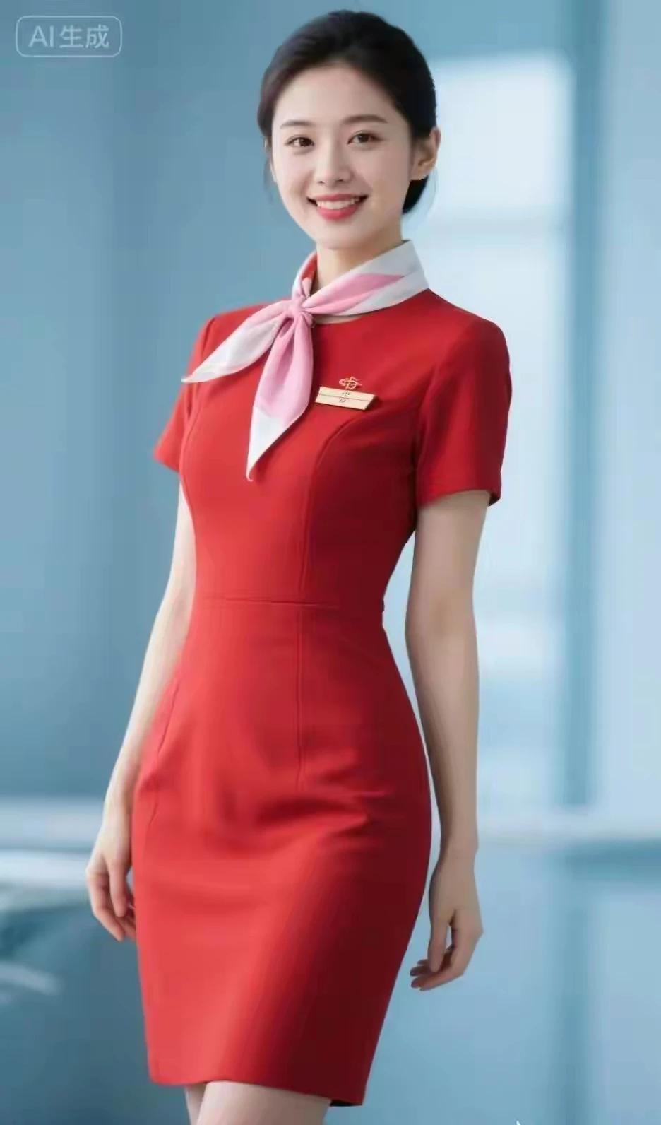 中国空姐,气质优雅。 红色裙装,美艳如花。 冰肌玉骨,明眸皓齿, 天生丽质,国色天香。 出水芙蓉,婀娜多姿。 眉清目秀,美若冠玉。 貌似天仙,倾国倾城。