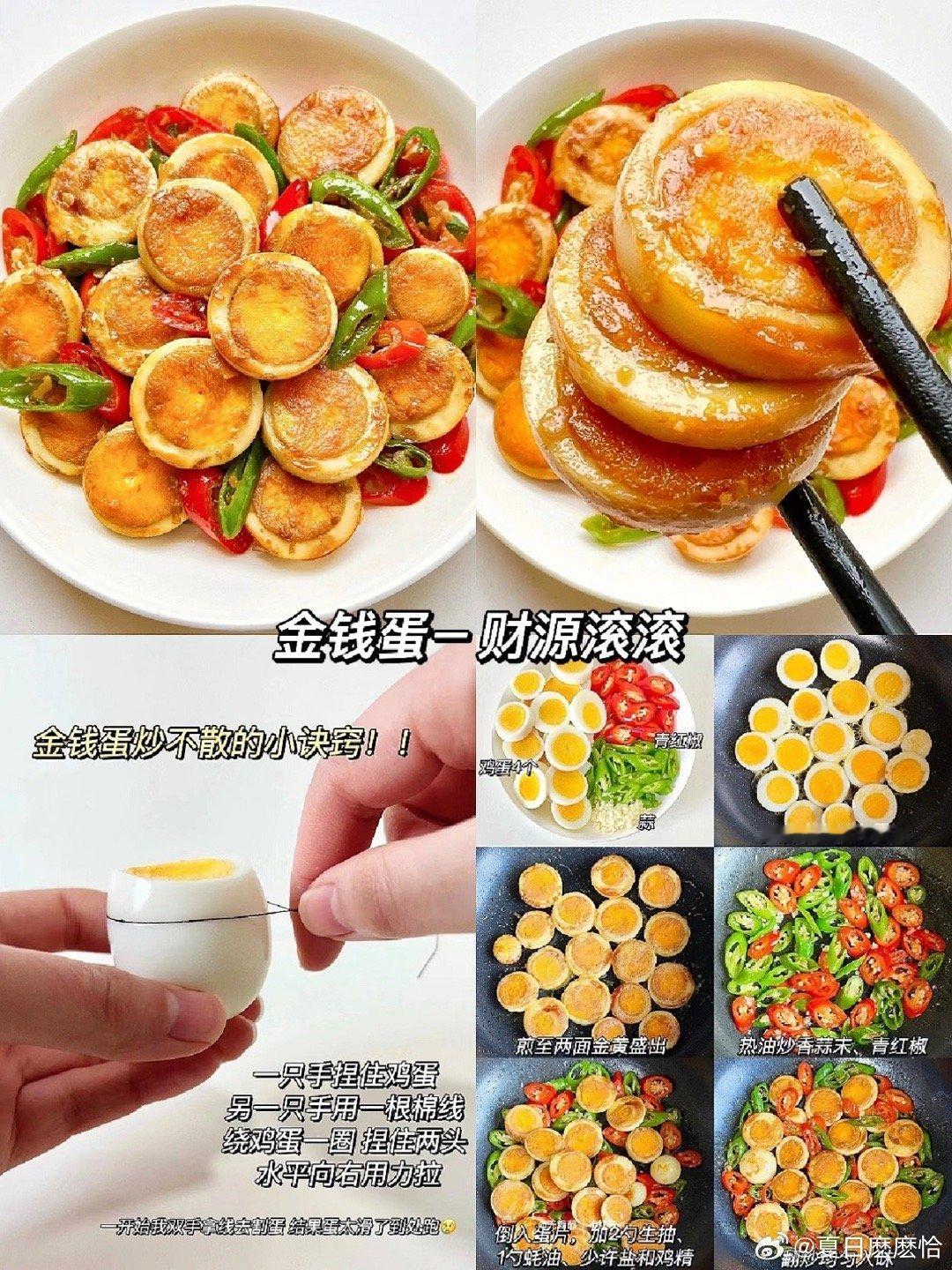 迎财神 正月初五来一道寓意财源滚滚的金钱蛋吧🔸食材准备:鸡蛋5个、青椒1根、小米辣3个、大蒜3瓣🔸制作步骤:1. 煮蛋剥壳:鸡蛋冷水下锅,加少许盐防裂;水沸后转小火煮8分钟,关火焖2分钟,捞出过冰水。彻底冷却后剥壳,用蘸水的刀切成约1cm厚的圆片(用棉线切更平整)2. 备料调汁:青椒、小米辣切圈,大蒜切末;蛋片两面轻拍一层薄淀粉;碗中混合生抽、蚝油、白糖、少量清水调成料汁3. 煎至金黄:不粘锅放多些油,油温六成热(筷子冒细泡),放入蛋片,中小火慢煎,一面定型微黄再翻面,煎至两面金黄,捞出控油4. 爆香调味:锅中留底油,下蒜末、小米辣爆香,放入青椒圈炒30秒;倒入蛋片,淋入料汁,轻轻翻拌1分钟,让每片蛋都裹上酱汁即可出锅🔸小贴士蛋片裹薄淀粉,能有效防止煎的时候蛋黄脱落哟正月初五接财神在上海过中国年