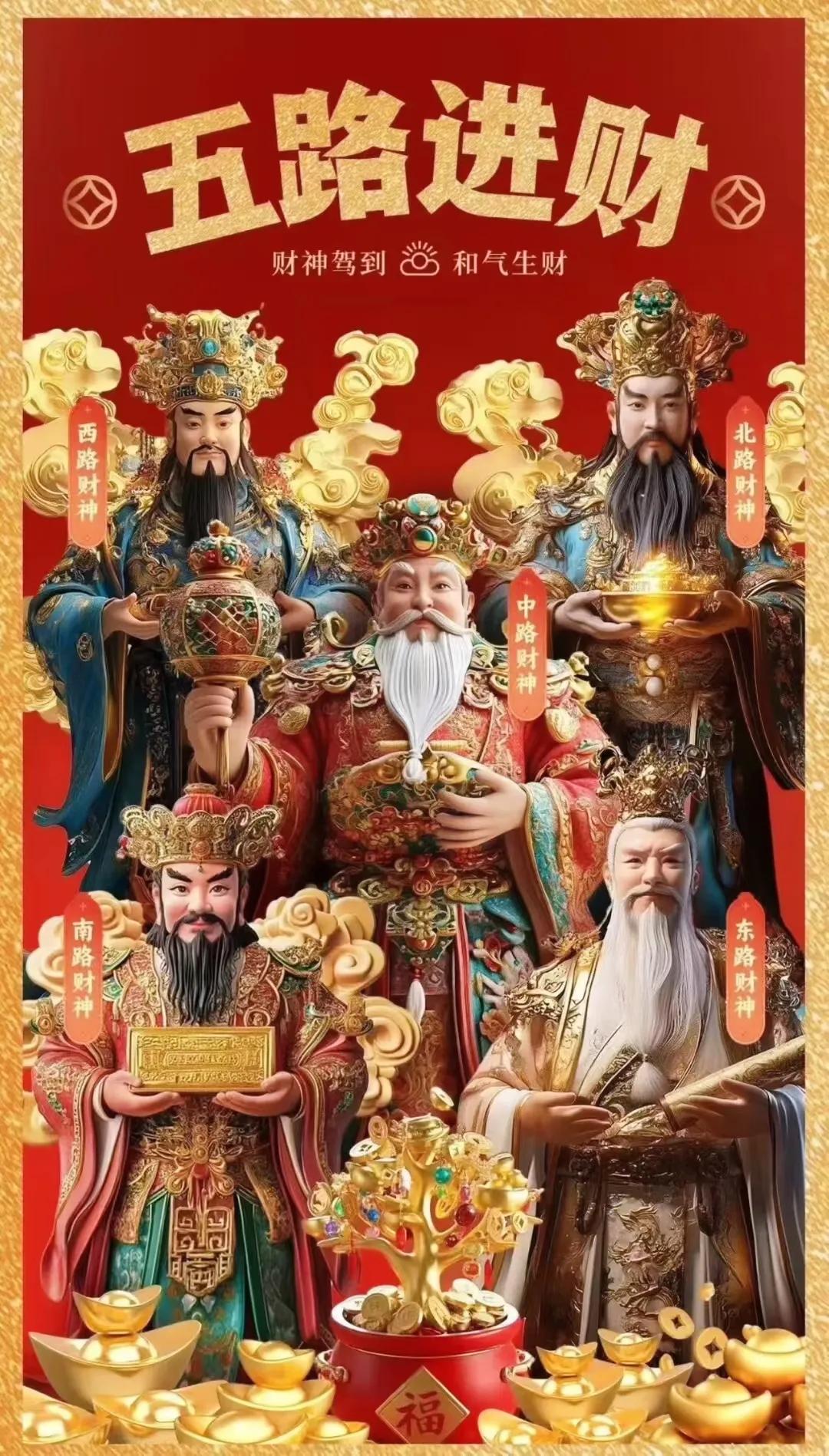 天门开,地门开,五方财神进门来,一赐福来二赐财,赐来金银抱满怀,三赐吉来四赐祥,赐来如意傍身旁,善门开孝门开,善因孝果财自来,恭迎五路财神进我家门来。招财纳福[合十][合十][合十]