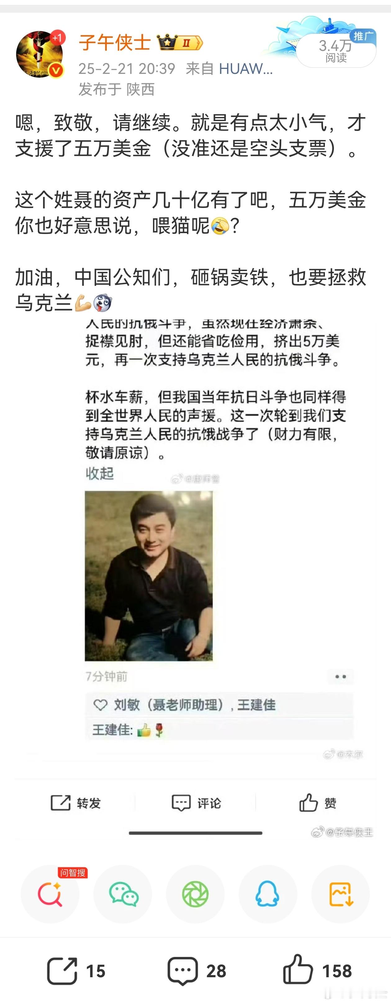 这个姓聂的又出来装了,当年宣称给乌克兰捐5万美金,用于乌克兰抗击俄罗斯,不知后来兑现了没有。