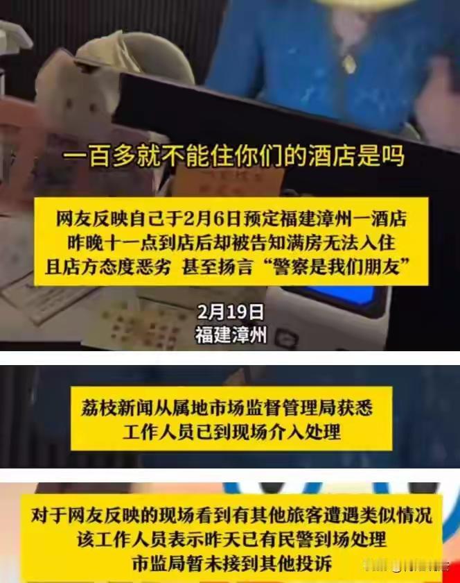 福建漳州云霄县106元酒店订单深夜被毁约,嚣张前台扬言“警察是朋友”,春节旅游市场契约精神何在? 春节的漳州本该是温暖热闹的,但李女士一家却在深夜的街头感受到了刺骨的寒意。提前半个月订好的酒店,白纸黑字的确认订单,换来的不是一张房卡,而是一句冰冷的“满房了,100多块住不了”。这不仅是拒绝,更是一种赤裸裸的蔑视。 更令人心寒的是前台那句“警察是我们朋友,你报警也没用”。这句话瞬间点燃了公众的怒火,它挑战的不仅是消费者的权益,更是对法律和社会公平底线的公然试探。庆幸的是,民警到场后秉公处理,市场监管部门介入调解,酒店最终退款并赔偿500元道歉。 可事情真的结束了吗?赔偿到位了,但一家人在春节深夜拖着行李四处找房的狼狈、旅行计划的彻底打乱、那份信任被践踏的委屈,是500块钱能弥补的吗?市监局工作人员那句“问题都解决了,为什么还要发网上”的疑惑,恰恰说明了某些管理者与公众感受之间的巨大鸿沟。 这绝非孤例。每逢节假日,酒店、民宿坐地起价、强行毁约的新闻总是不绝于耳。根源在于违法成本太低。一间房从106元涨到七八百,毁约后最多退款加赔几百,算下来商家依然血赚。这种“违约有利可图”的算计,正是契约精神屡屡被撕碎的真正推手。 我们不能总指望消费者个个都成为维权战士。一个健康的市场环境,需要监管长出“牙齿”。对于这种恶意毁约、坐地起价的行为,处罚必须让其感到“肉疼”——高额罚款、信用降级、平台下架,甚至支持消费者主张惩罚性赔偿。唯有让失信的成本远高于收益,歪风才能刹住。 旅游口碑的建立,需要日积月累的真诚服务;而它的崩塌,往往只需要一两个这样的夜晚。漳州乃至福建丰富的旅游资源、独特的民俗文化,吸引着八方来客。但再美的风景,也抵不过一次寒心的遭遇。一颗老鼠屎,真的会坏了一锅好粥。 李女士将经历发到网上,不是为了那500元,而是要一个公道,一次警醒。她的较真,保护的是所有消费者未来可能受损的权益。当我们为她的勇气点赞时,更应呼吁:监管必须跑在投诉前面,让每一个商家都明白,契约的重量,远重于一时暴利。 旅游乱象 契约精神 消费者权益 (来源:综合自荔枝新闻、观威海及多家自媒体平台报道)