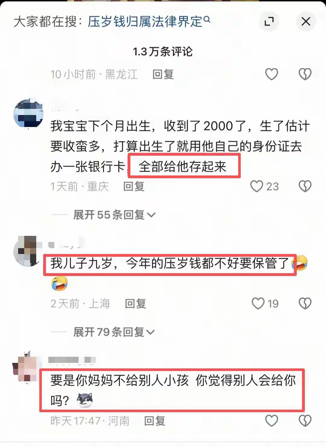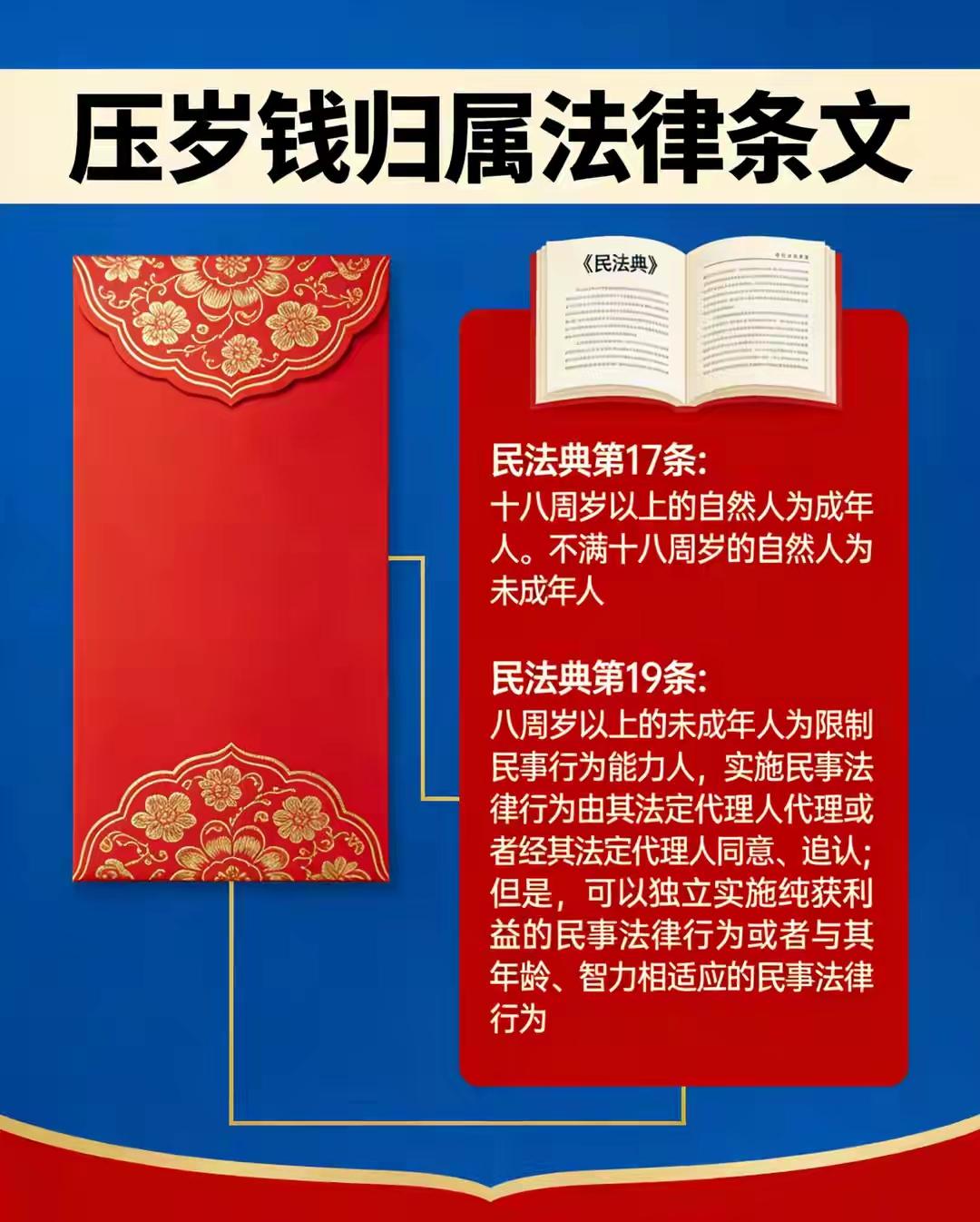 热搜炸了!2万压岁钱到底该归谁?别争了,法律早给了答案,但99%的家长都做错了! 春节刚过,你家是不是也上演了“压岁钱保卫战”?一段“妈妈要求孩子上交2万元压岁钱遭拒”的视频引爆全网,评论区瞬间撕裂。孩子紧捂口袋,眼神倔强;家长满腹委屈,觉得孩子不懂事。这抹春节红,怎么就变成了亲子关系的“火药桶”? 先别急着站队。法律其实早已一锤定音。《民法典》说得明明白白:压岁钱是长辈对孩子的赠与,所有权自给出去的那一刻起,就归属孩子。父母?只是“代管员”,无权挪用,更不能据为己有。那些“我先帮你存着”的经典台词,在法律面前,其实站不住脚。 可道理归道理,现实是另一回事。多少家长心里憋着一句话:“这钱不是我礼尚往来换回来的吗?”这话听着在理,却混淆了情感与权属。压岁钱流动的背后,是成年人之间的人情世故;但递到孩子手里的那一刻,它就是一份纯粹的祝福。用成年世界的规则,去没收孩子的专属喜悦,我们争赢的可能是钱,输掉的或许是信任。 比“钱归谁”更重要的问题是:“钱怎么用?”这才是压岁钱真正的价值所在。它不该是家庭内耗的源头,而应是孩子财商启蒙的第一桶金。聪明的家长,早已不再纠结归属,而是转身成为了孩子的“财务顾问”。 你可以和孩子一起,给这笔钱做个“三分规划”:一部分存入他的专属账户,作为未来的“梦想基金”;一部分划为学习经费,购买书籍、课程;再留出一小部分,作为他可以自由支配的“快乐零钱”。这个过程,远比把钱简单收缴更有意义。 当孩子自己决定是存钱买一个心仪已久的望远镜,还是立刻换成一堆零食时,他学到的不仅是计算,更是取舍与规划。当他看到账户里因为储蓄而慢慢增加的数字,他感受到的是延迟满足带来的成就感。这份成长,多少钱都换不来。 压岁钱,压住的是“岁”,守护的应是童心与未来。别再让红包变成亲子间的拉锯战。今年,不妨换个方式:郑重地告诉孩子,“这是你的钱,我们一起学着管好它。”你会发现,当你给予尊重,孩子回报的,往往是超乎你想象的责任感。 压岁钱归属 财商启蒙