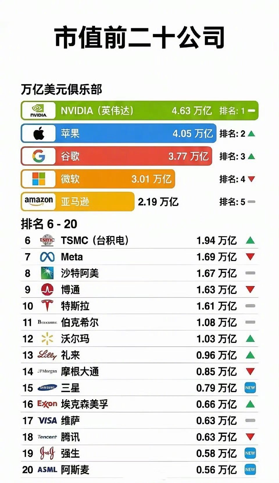 看了一眼最新全球市值TOP20,全是AI和半导体的天下…🤯前20里中国只有腾讯一家互联网公司坚守第18名下一个杀进前20的万亿中国公司会是谁?🥇