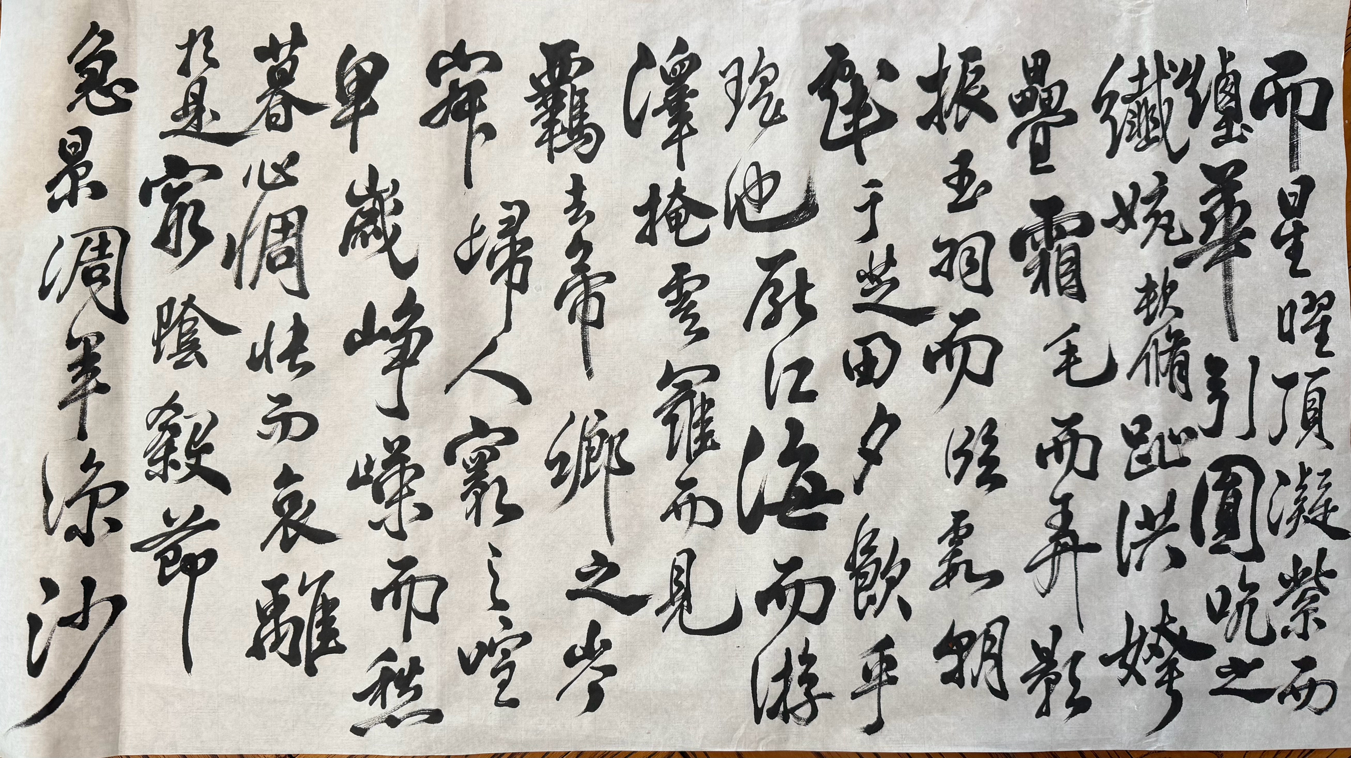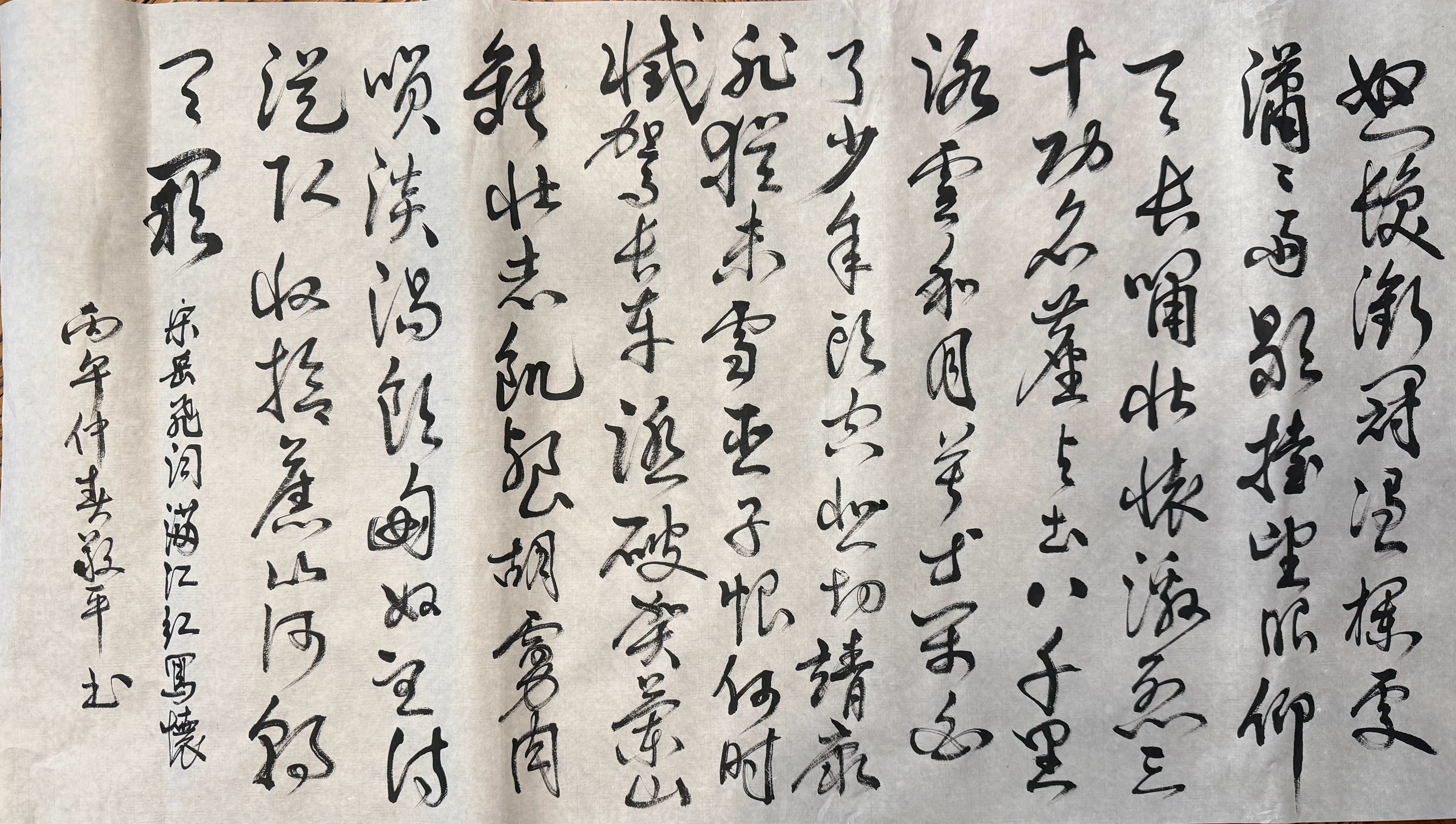 今天上午写的。第一次用草书的方式写,感觉不如临摹米芾时的心情洒脱。看来得好好临摹米芾的帖,争取能学点皮毛就满足了。