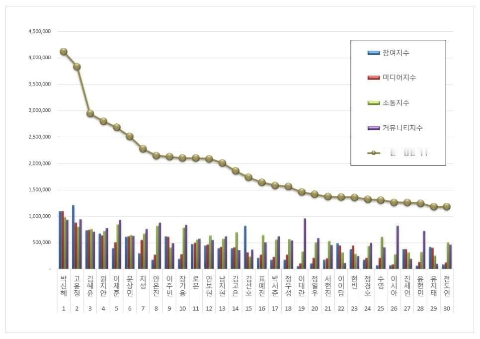 21-30名:徐玄振、李伊谭、玄彬、郑敬淏、崔秀英、李诗雅、陈世妍、尹贤敏、刘智泰、全度妍