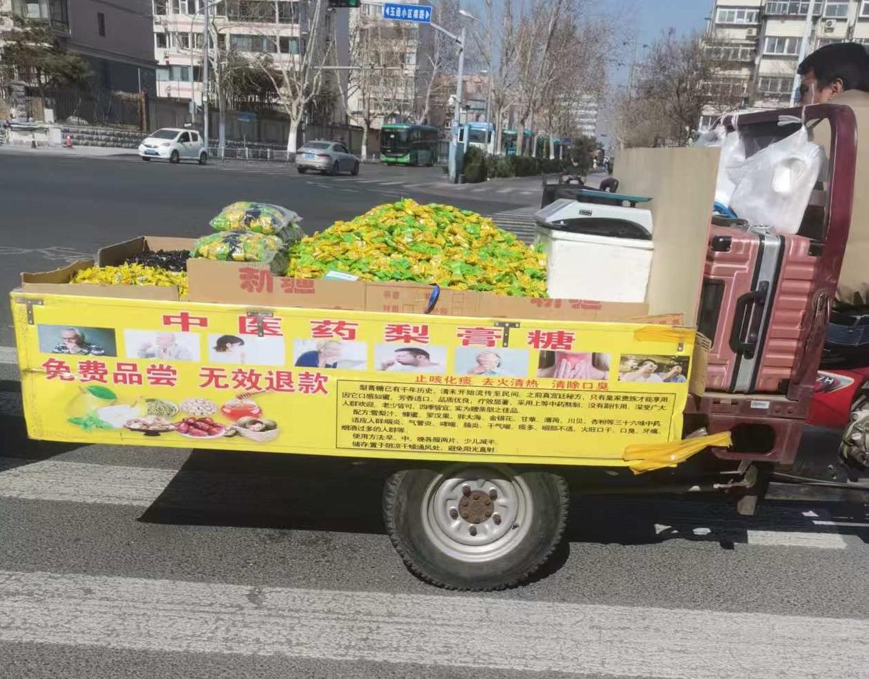 在济南的街头,经常能见到卖梨膏糖的, 这种现象持续很多年了,一辆机动三轮,上面装满了塑料纸包装的糖块,据说止咳化痰、去火清热,有小喇叭24小时播放梨膏糖的疗效,小贩看面相,似乎来自西部省份,整体操作,非常像多年前的“江南皮革厂”…… 问题是,我从未见过有人购买或询价,我怀疑很可能一天也卖不出去一包, 这真是一件奇怪的事情,大家怎么看这件事,每天都不开张,这么多年,怎么生存的?