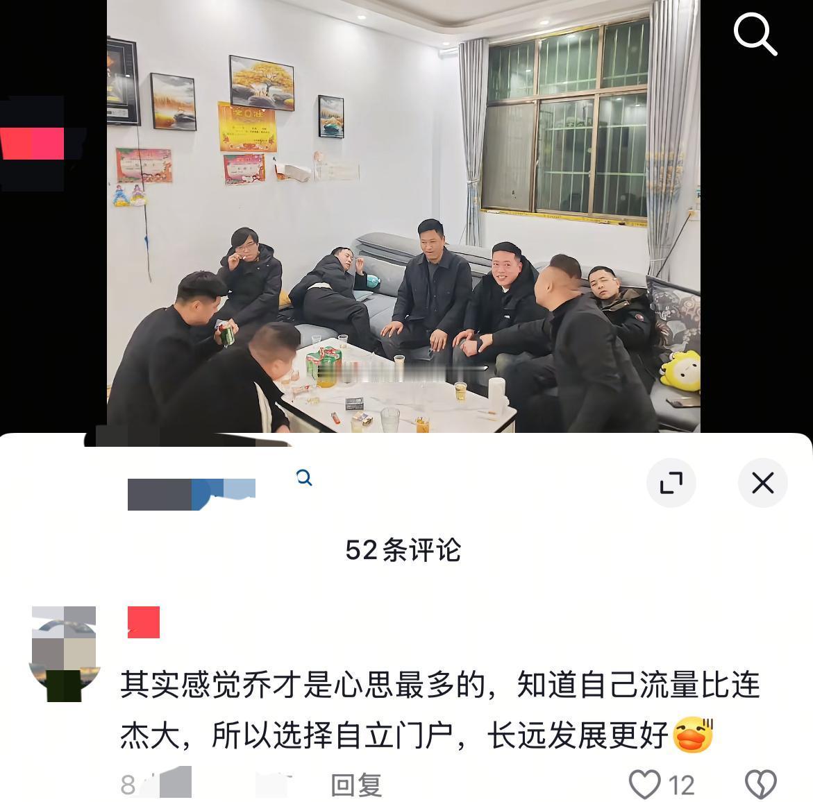 张乔被踢出发小群聊了。 你翻看手机时,突然刷到那张合影——连杰、张筝他们都在,所有人脸喝得通红对着镜头笑,唯独少了他。 当初是连杰手把手教他运镜,拍出第一个十万赞视频。 现在他商务排队到明年,身价暴涨,兄弟的聚餐名单里却没了他名字。 流量会重新分配一切,包括你身边最铁的人。 这不是忘本,这是人性在巨大利益面前最真实的刻度。 你看清的不是一个网红,而是每个圈层跃迁背后,必然脱落的旧壳。