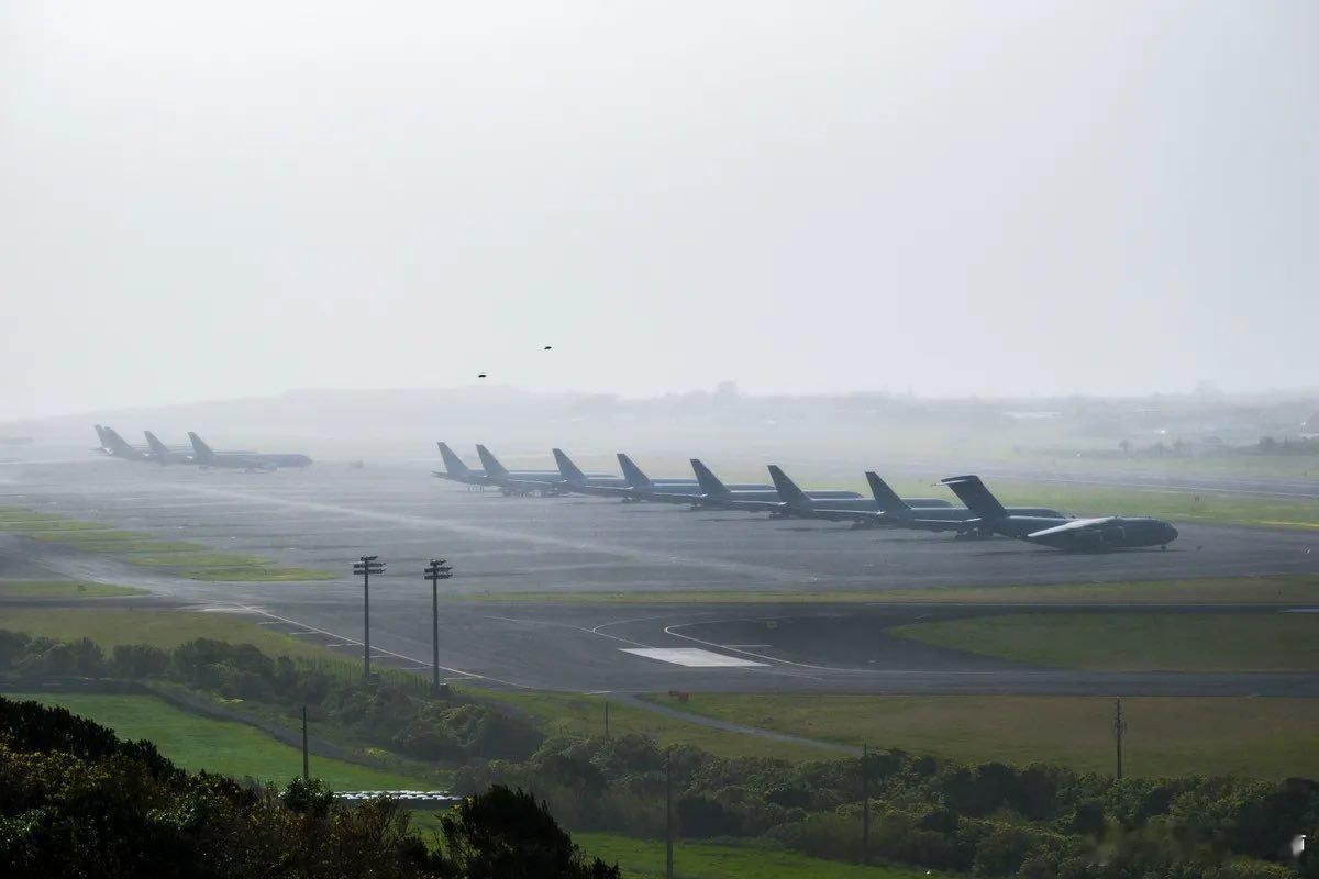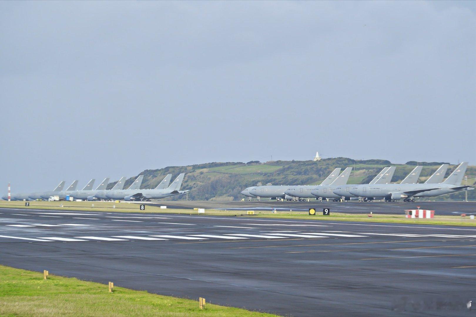 至少有15架KC-46A"飞马"空中加油机出现在北大西洋亚速尔群岛的拉杰斯机场。该基地是飞往欧洲和中东的重要中转站,驻扎在那里的加油机可以为远程轰炸机提供空中加油。