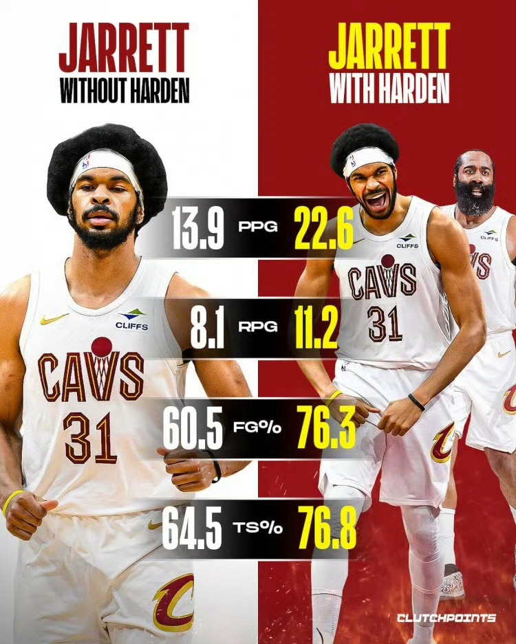 📊哈登加盟骑士前后阿伦的数据如下👇
