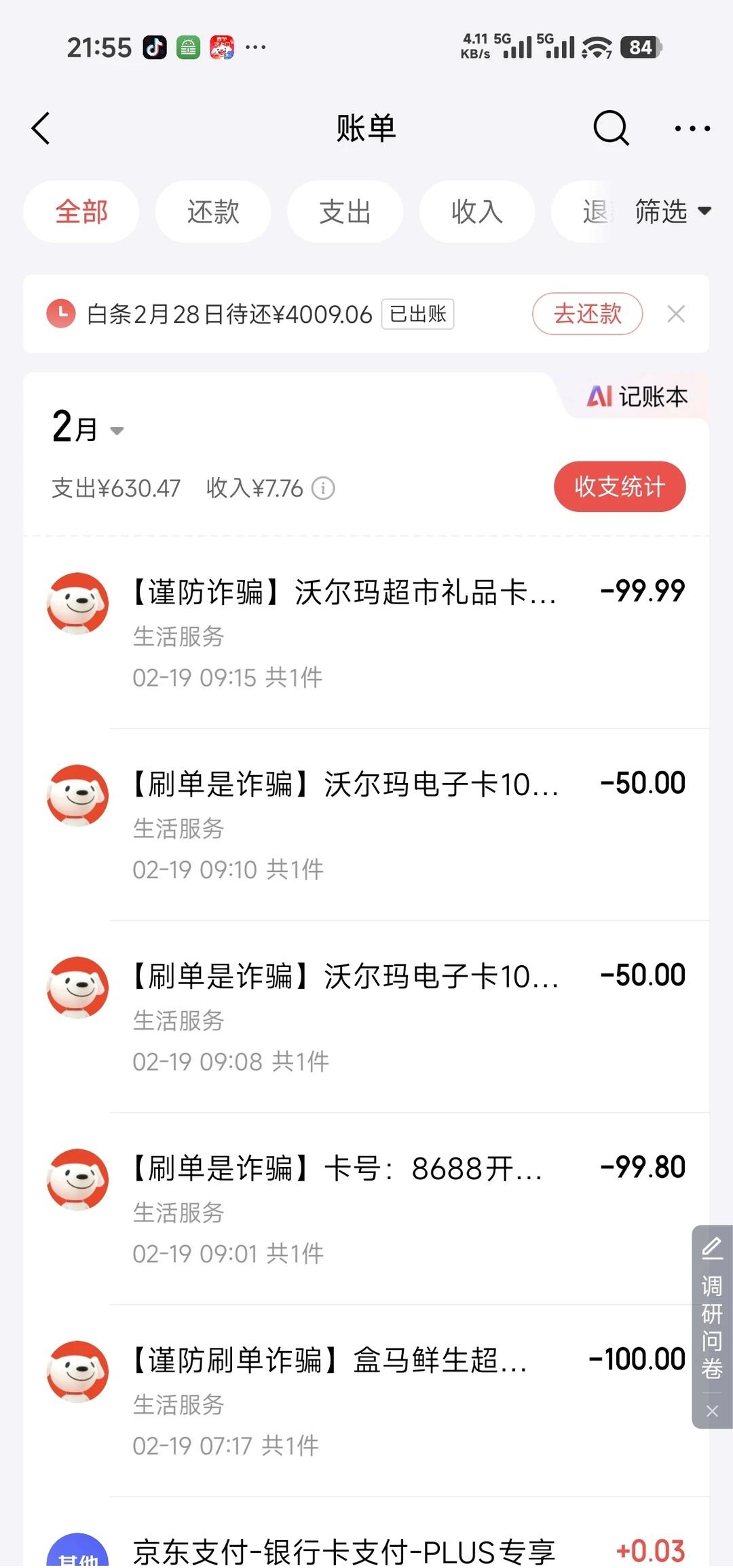 京东出现奇怪订单 买东西的时候发现默认地址是个奇怪的陌生地址,没当回事儿,随手删掉了。随后发现京东还有几笔待支付订单!我敢确定,不是我下的!因为陌生订单出现在早上7:00~9:00左右,而今天大年初三,我早上睡到11点半才起床!继续去京东金融查看,竟然找到了几笔交易成功的订单,但奇怪的是,我翻遍了白条,微信支付和银行卡等账单,没有找到实际扣款的来源。这几笔陌生订单商品名称上全都带有【xxx诈骗】前缀。有遇到过类似情况的吗? 京东陌生订单 诈骗