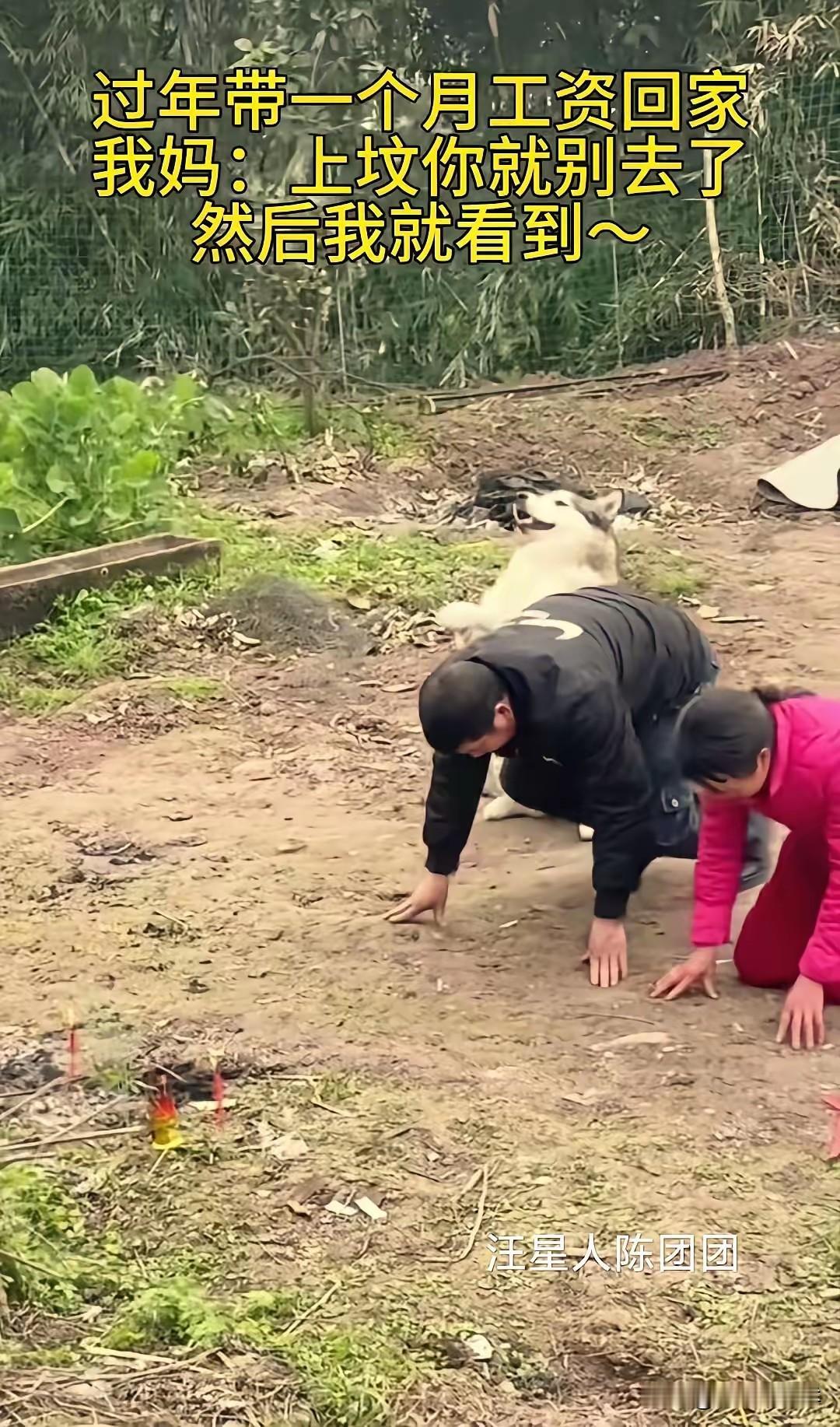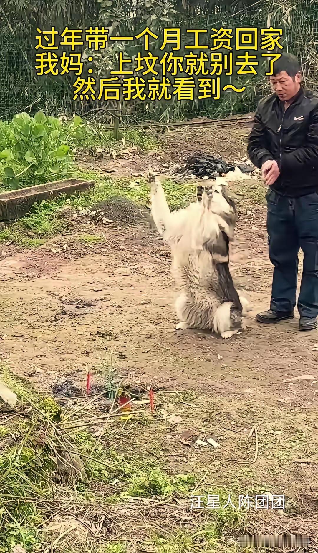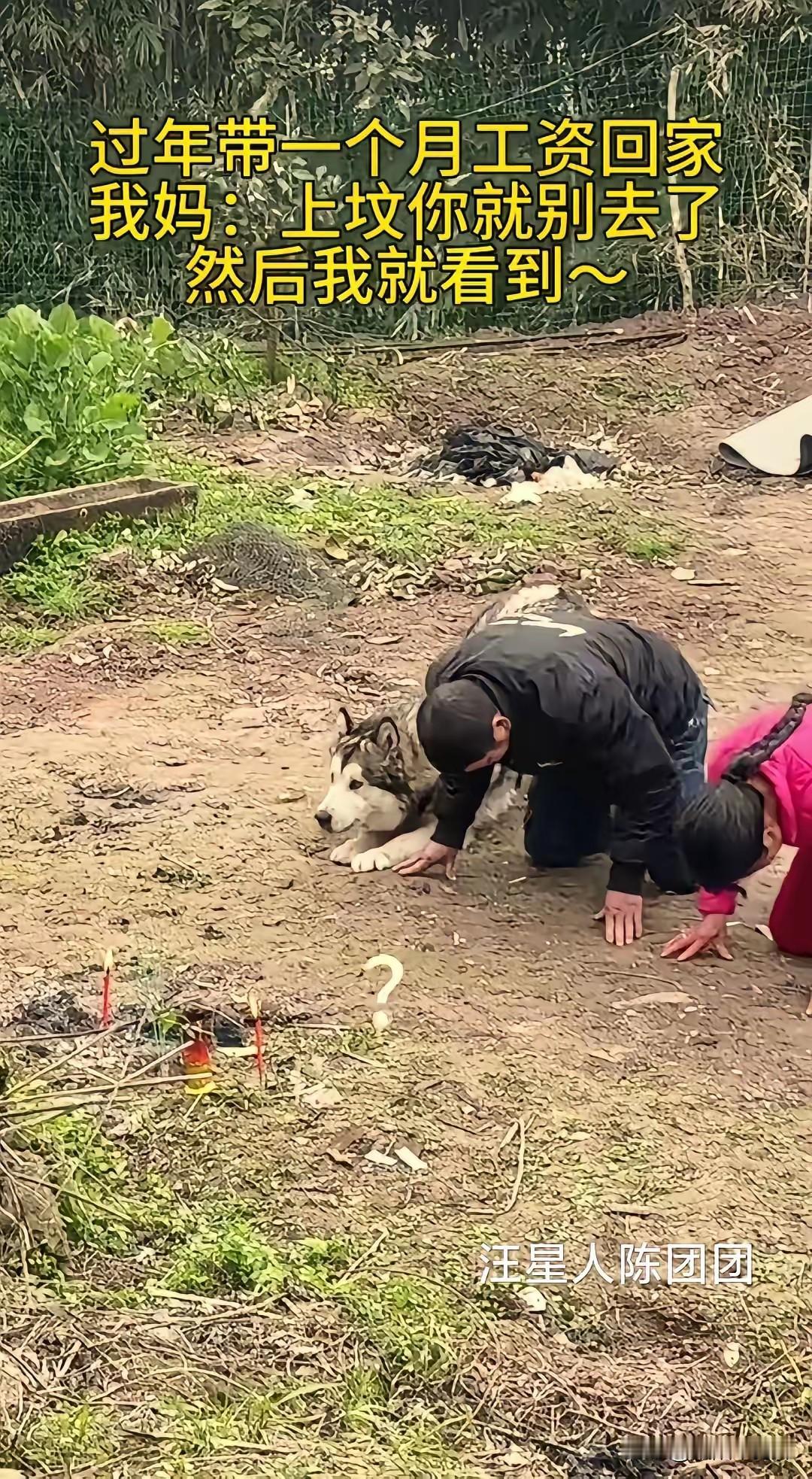 太有灵性了!重庆,一男子过年上坟,意外拍下不可思议的一幕:父母祭拜时,家里的狗狗竟然全程跟着模仿。父母鞠躬,它也站起身努力挥舞前爪,父母跪地,它也将前爪和脑袋跪伏于地。更让人意外的是,父母祭拜结束后,狗狗竟然最后一个起身!网友直呼:这狗狗也太通人性了! 事情发生在2026年马年春节期间,重庆农村的一处山脚下。这名男子常年在外地打工,今年揣着一个月工资赶回老家过年。按照当地习俗,大年初三要上山给祖辈上坟,男子原本打算跟着父母一同前往,却被母亲拦下。 母亲的理由很简单,说男子在外奔波一年太辛苦,让他在家歇着,自己和老伴带着家里的哈士奇上山就行。男子心里纳闷,却也没多反驳,想着偷偷跟在后面,看看父母会不会太累,没想到这一跟,就拍到了让全网动容的画面。 男子拍摄的视频里,场景是一片长满杂草的坟地,地面上还留着烧纸钱的灰烬。他的父母手持香火,站在坟前神情肃穆,嘴里轻声念叨着祈福的话。话音刚落,父亲率先弯腰鞠躬,让人没想到的是,身旁的哈士奇立刻有了反应。 这只平日里总爱拆家、没个正形的哈士奇,此刻却一改往日调皮模样。它后腿稳稳站立,两只前爪高高抬起,跟着老人鞠躬的节奏,慢慢往下放,动作笨拙却格外认真。父亲鞠了三个躬,它就跟着“鞠”了三个,丝毫不差。 随后,男子的父母双膝跪地,双手撑地,对着坟头磕了三个头。哈士奇见状,也立刻收敛动作,先是犹豫了一秒,接着缓缓将前爪趴在地上,脑袋也跟着贴向地面,整个身体伏在地上,和老人的祭拜姿势几乎同步。 更戳人的是祭拜结束的瞬间。男子的父母起身整理衣服,准备离开,哈士奇却依旧保持着伏跪的姿势,过了足足五秒,才慢慢抬起头,晃了晃脑袋,站起身跟在老人身后,一步三回头地离开了坟地。 男子将视频发到网上后,迅速登上了本地热榜。有网友留言,说自己家的狗狗也会跟着祭拜,看来狗狗真的能感知到主人的情绪。也有网友调侃,没想到“拆家专业户”哈士奇,还有这么庄重的一面,反差感拉满。 有人提出不同看法,认为狗狗的行为只是条件反射,长期跟着主人参与祭拜,慢慢记住了动作,并非真的“通人性”。但在男子看来,这种说法太过冰冷。他说这只哈士奇养了五年,从小跟着家里老人长大,老人吃饭会给它留一口,老人休息它会守在门口,早已成了家里的一份子。 男子回忆,去年爷爷生病住院,这只哈士奇每天都会蹲在门口,直到老人出院回家,才肯跟着进屋。他坚信,狗狗的这些举动,是对主人的陪伴,也是对这份亲情的感知。 其实在农村,很多家庭的狗狗都不只是宠物。它们跟着主人下地干活,陪着老人看家护院,见证着一家人的喜怒哀乐。它们或许不懂祭拜的深意,却能读懂主人的肃穆,用自己的方式,回应着这份温暖。 我们总说,人与动物的缘分,藏在日复一日的相处里。狗狗的世界很简单,你对它好,它就拼尽全力对你忠诚。这只哈士奇的举动,无关灵性与否,更多的是长期陪伴下,刻在骨子里的默契。 各位读者你们怎么看?欢迎在评论区讨论。