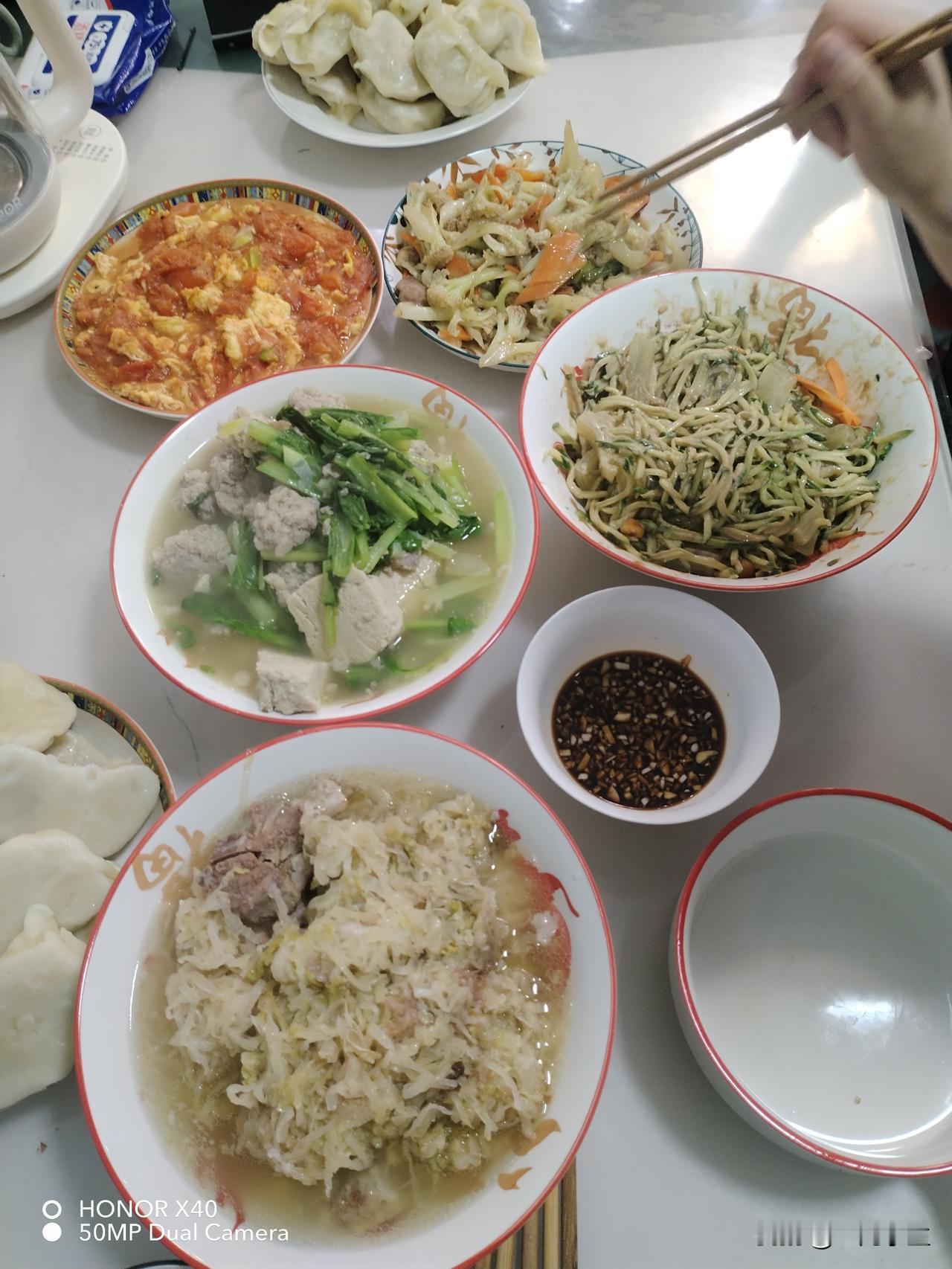 晚上叫闺女和女婿来家里吃饭,我包了饺子。正月一直没在家,今天正赶上初五,都有包饺子的传统。咱也随大溜吧!打电话让闺女来,她有点不爱动弹,但是作为妈妈,我还是很勤快的。准备了五个菜,都是临时买的。 今天超市里的人超级多,买菜竟然排队,买了几样菜,花了60多。她们没吃多少,肚里都有油水吧! 饺子没吃完,又给她们带回去了,留着早上吃。闺女说明天要出门看亲戚,我把接的米让她拿走了,又让她去旧楼取豆油,反正接了很多,吃也吃不完。不如送礼吧!