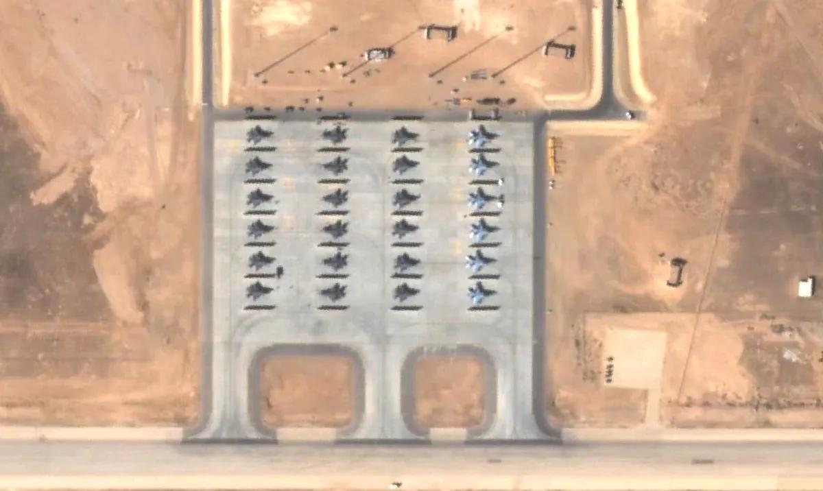 今天的约旦穆瓦法克·萨尔蒂空军基地卫星照片,可以看出部署有大批美国空军战斗机,主要是F-35A和F-16C。有的露天停放,有的则停放在机棚下。 一旦美国对伊朗动武,这座空军基地将是美军陆基战斗机的主要出击基地。