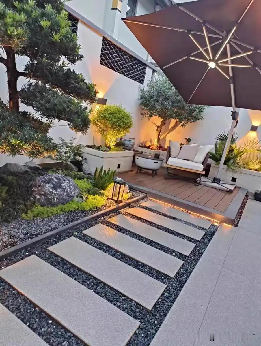 很多人一直在追求庭院的档次,总想将庭院做的高大上,所以他们总会将庭院做的花里胡哨,浪费了钱不说,要不了几年便会审美疲劳。 一个好的庭院一定是简洁、大方、清爽、实用的,而且后期也是非常好打理的。 千万不要专注白天的效果,其实晚上的效果更加重要,教大家一个方法,一定要把晚上的灯光系统做好,灯光是我们用最少的钱做最好的景观效果元素之一。 为了让大家全方位的了解这一点,老丁今天找了不少图片给我做参考。