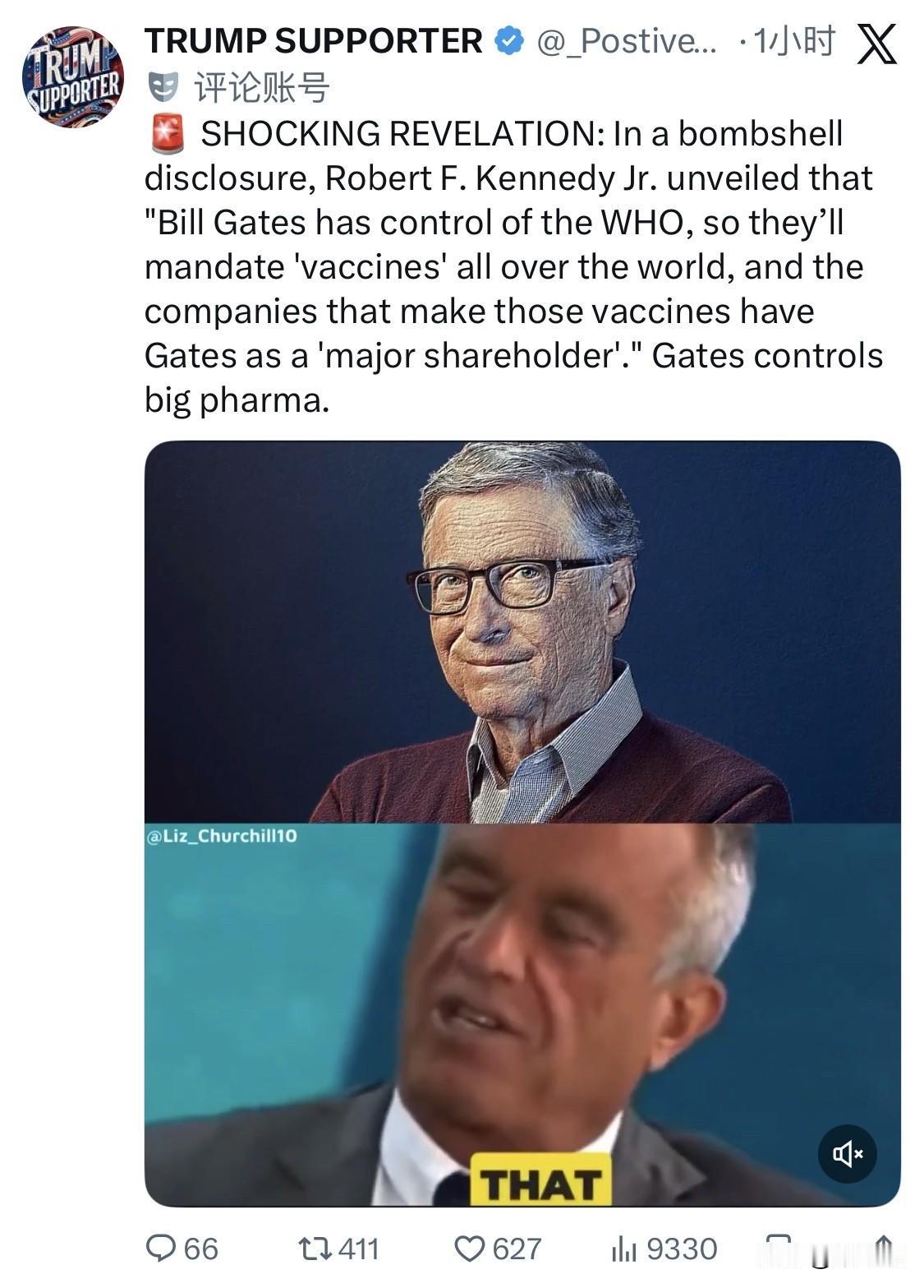 惊人爆料:美国卫生与公众服务部(HHS)部长小罗伯特·F·肯尼迪爆出重磅消息,称“比尔·盖茨控制着世界卫生组织,所以他们将在全世界强制推行‘疫苗’,而生产这些疫苗的公司,盖茨都是‘主要股东’。”盖茨控制着大型制药公司。 不过,比尔及梅琳达·盖茨基金会(BMGF)确实是世卫组织最大的捐助者之一。截至2025年,它是仅次于美国的第二大资金来源,贡献了世卫组织约 9.5% 至 12% 的预算。
