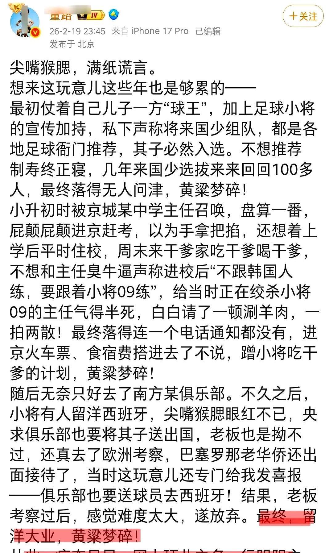 一个16岁进中超,另一个还在中乙泥地里打滚。 孙晨曦的父亲凌晨三点发长文,直指董路搞“足球期货”。十年青春,换来一纸中乙合同,谁能甘心。 讽刺的是,当初一起在西班牙的队友邝兆雷,刚被董路风光送进中超,一场付费直播就收了6万多。 十年陪跑,当爹的连一句质问的资格都没有吗?