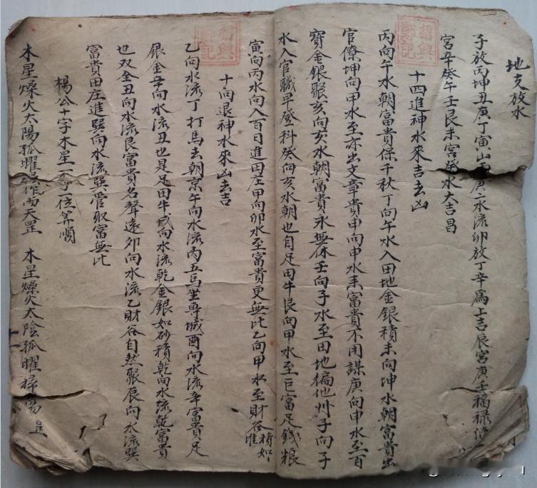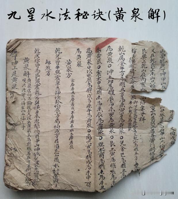 风水古籍《九星水法秘诀》黄泉解 📖页数: 43双页80页(局部残缺少字) 🆕简介:《九星水法秘诀》黄泉解,堪舆风水相关古籍。
