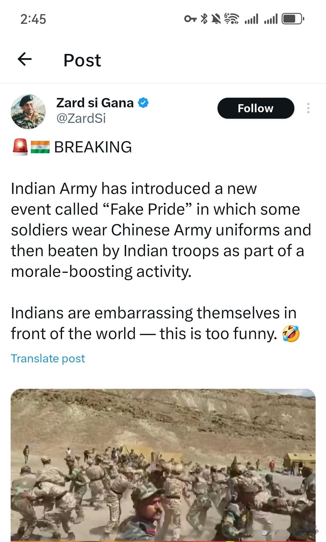 印度军队推出了一项名为 "假骄傲 "的新活动,一些士兵穿上中国军队的制服,然后被印度军队殴打,作为鼓舞士气活动的一部分。 印度人在全世界面前丢人现眼--这太有趣了。 🤣