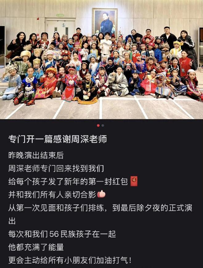 别以为明星的尊重只在镜头前。 刚下春晚,周深做了一件事,撕开了内娱最大的“体面”。 演完《此心安处是吾乡》,他没走。 而是折回后台,找到那56位伴舞,亲手给每个人塞了一个红包。 不是让助理去发,是自己一个一个给,每个红包里崭新的一百块,五千六,一分不多,一分不少。 你想象那个画面:刚结束高强度表演,气息还没喘匀,他就揣着一沓红包,在满是设备和人员的后台里找人、道谢、双手递上。 这不是公关稿里的“感谢团队”,这是把每个幕后的人,都当成了“人”来尊重。 娱乐圈最缺的不是排场,是把伴舞当工具、还是当伙伴的真心。 他的尊重不在通稿里,在亲手递出的那个红包里。 这不是情商,是人品。