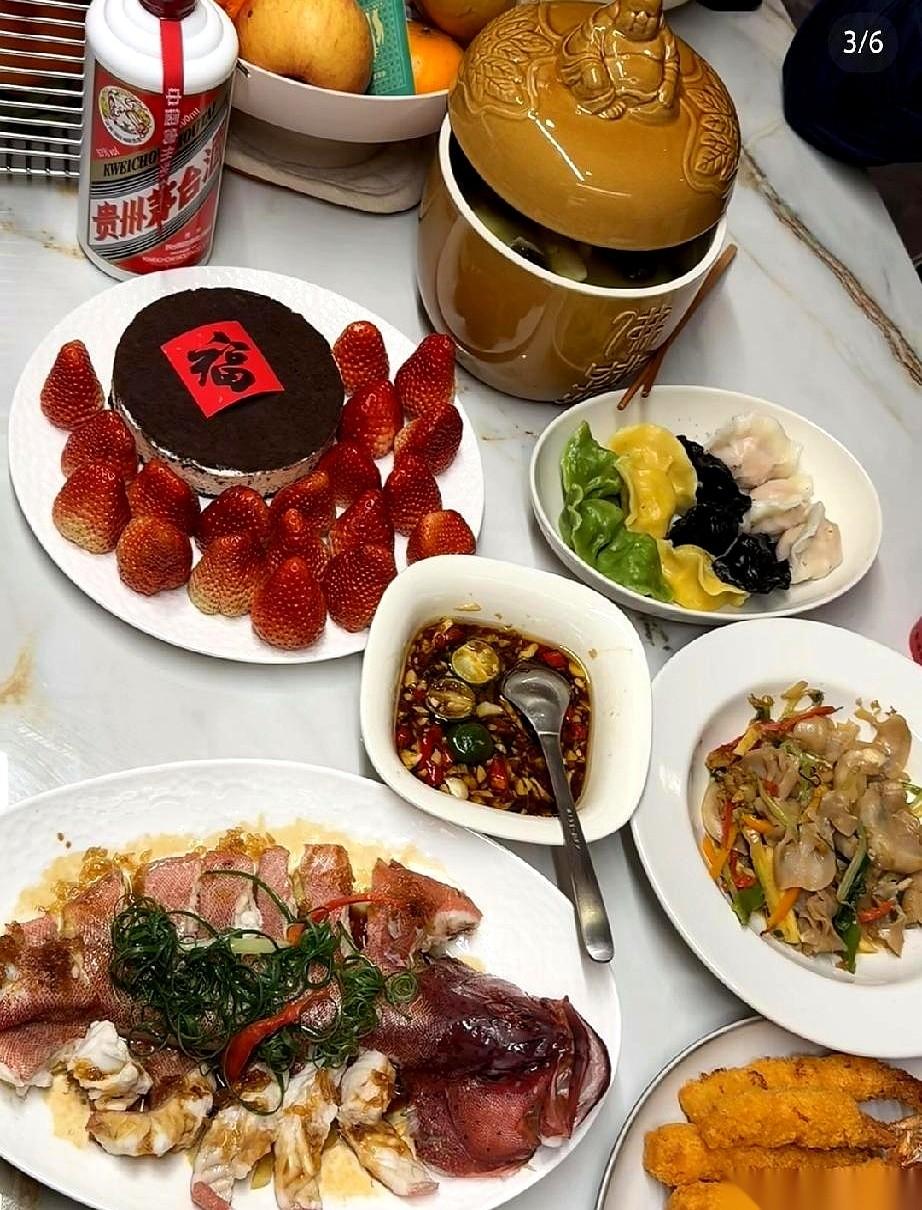 刷手机,给我刷愣了。 一桌子年夜饭,C位不是别的,是帝王蟹、象拔蚌、大龙虾…… 旁边还安安静静地躺着一瓶茅台。 坐标:闽A。 有人在评论区算了一笔账,说这桌没个年入500万根本下不来。 我承认,第一眼,我酸了。 真的,这不叫年夜饭,这叫“海鲜兵马俑”,摆在那儿就是一种气势,一种宣告。 但说真的,羡慕归羡慕。 我转念一想,我们家那桌子呢? 我爸卤的牛肉,我妈炸的丸子,我从菜市场抢回来的最后一刀五花肉做的红烧肉。 酒,也就是我爸珍藏了半年的那瓶普通白酒。 一家人,最难得的是什么? 是凑齐。 是听我爸喝了两杯开始吹牛当年勇,是我妈一边嫌我胖一边给我碗里夹最大那块排骨。 是七大姑八大姨在家族群里用最土的表情包刷屏拜年。 人家那桌,是财富的证明。 我们这桌,是生活的本身。 都挺好,真的。 过年嘛,吃的啥,喝的啥,到最后能记住的,不还是桌上那几张笑脸吗? 祝他们海鲜自由,也祝我们笑声自由。