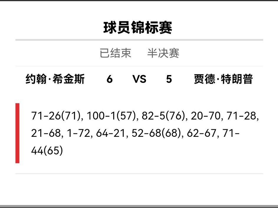 昨夜有多嚣张,今夜就有多凄凉!希金斯教特鲁姆普做人,巫师6:5绝杀准神,晋级决赛! 昨晚世界第一特鲁姆普,2026斯诺克球员锦标赛半决赛,6:3战胜克威廉姆斯的比赛中,最后一局第9局,特鲁姆普单杆过百之后疯狂秀球技,本分厚道的老马看不惯小特如此嚣张,直接把毛巾扔到球桌上,结束了比赛。老马也曾是世界第一,拥有3个世锦赛冠军27冠王的杰出斯诺克名人堂运动员,特鲁姆普完全不把老马放在眼里,缺少应有的尊重。 特鲁姆普经常有这种嚣张的表现。 今晚半决赛对阵约翰希金斯,希金斯5:3拿到赛点之后,由于体能下降,两次出现简单失误,小特捡漏赢了2局。大比分5:5平。 决胜局,小特率先上手拿到44分,球形十分开放,局面简单,眼看可以完成大逆转。结果得意忘形,打丢简单红球,被希金斯单局逆转,完成绝杀,挥拳庆祝。仿佛再说,小子,你还嫩点,七五三杰仍然是世界一流高手,要懂得尊重前辈。 全场比赛,尽管希金斯打的十分一般,而号称谁神的小特,只打出了一杆50+(单杆最高分68分)。毫无世界第一的风采与气度,十方狼狈。
