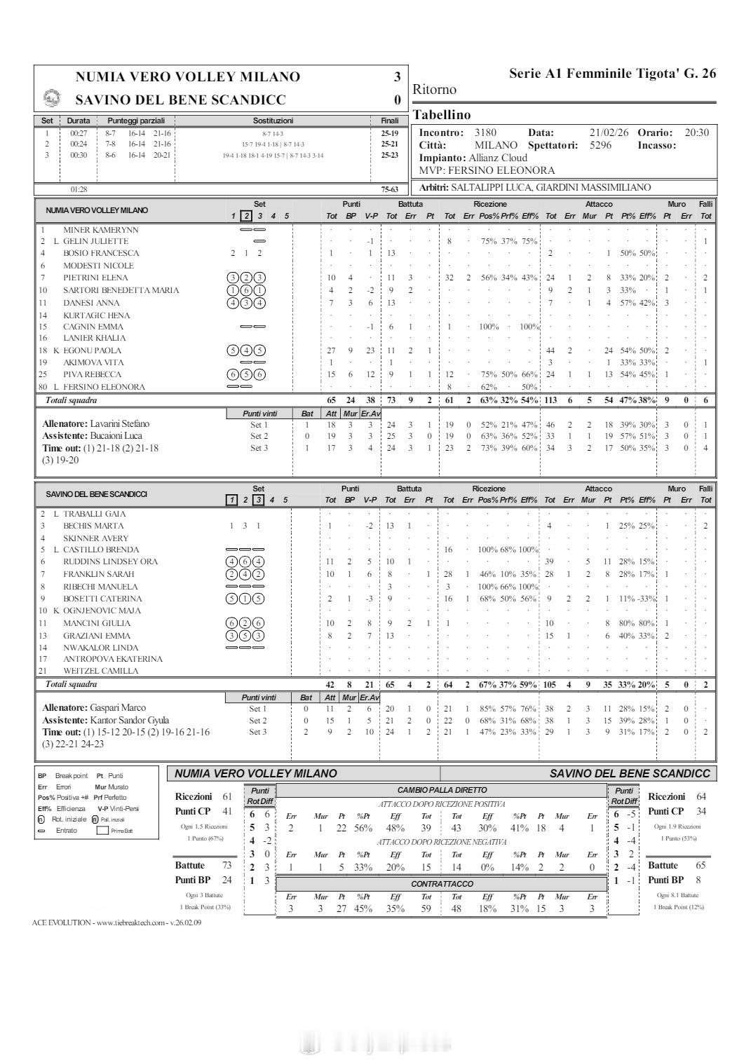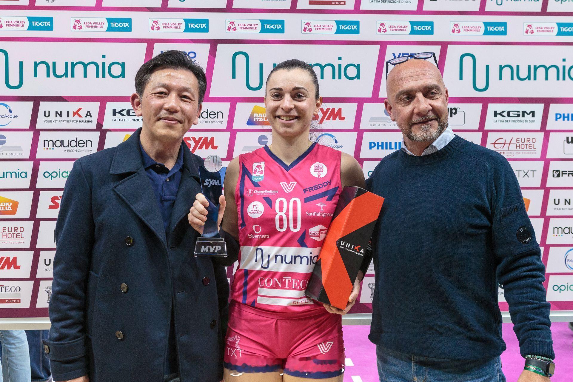 【意甲女排降级佩鲁贾3-2爆冷基耶里 米兰零封斯坎迪奇】 国际排坛战报速递2月21日,意甲女排第26轮暨常规赛最后一轮,已经提前降级的佩鲁贾主场爆冷,3-2(15-25/16-25/25-19/25-14/15-9)击败此前排名第四的基耶里。加尔迪尼23分、马尔科维奇13分、佩里内利和莱蒙斯各11分、自由人雷奇亚当选MVP,内梅斯23分、内尔维尼13分、昆兹勒和阿尔伯蒂各10分。米兰主场3-0(25-19/25-21/25-23)零封安娃休战的斯坎迪奇,埃格努27分、皮瓦15分、皮耶特里尼10分、自由人费尔西诺荣膺MVP,鲁丁斯11分、富兰克林和曼奇尼各10分。